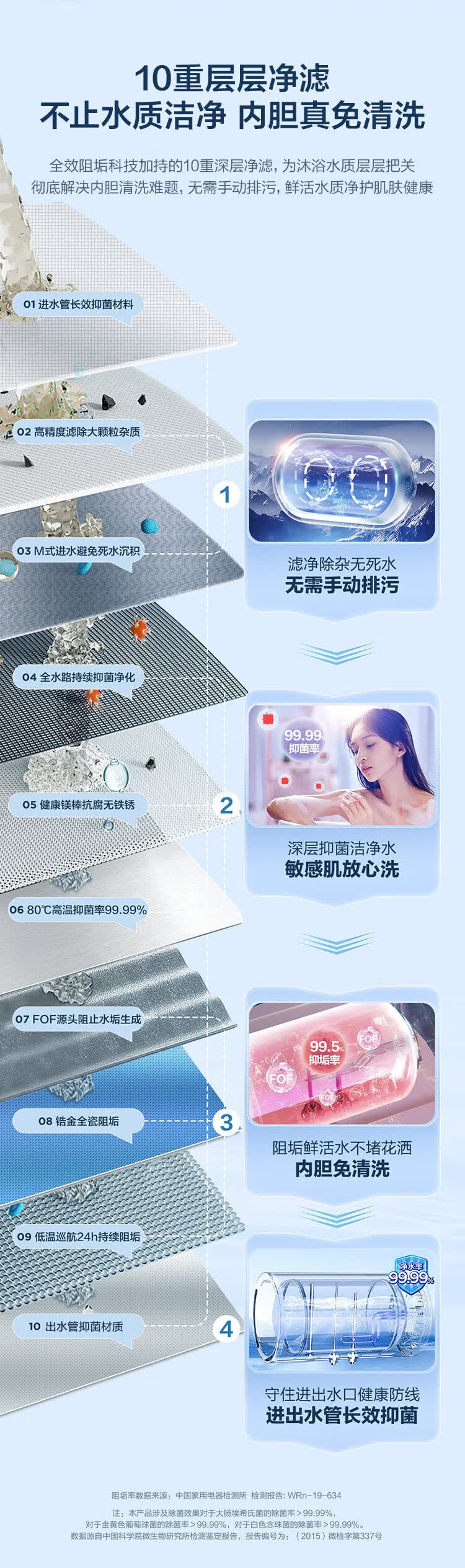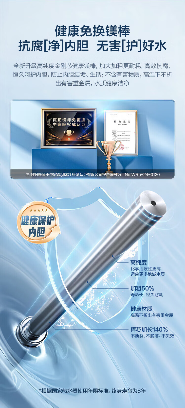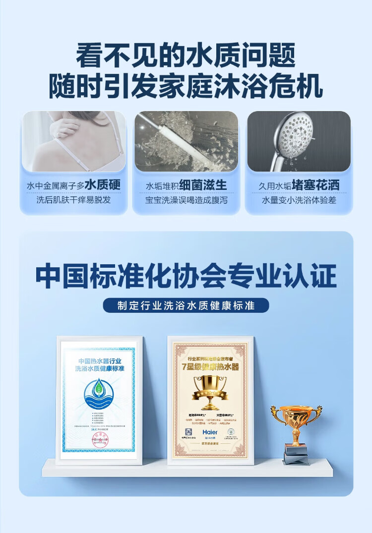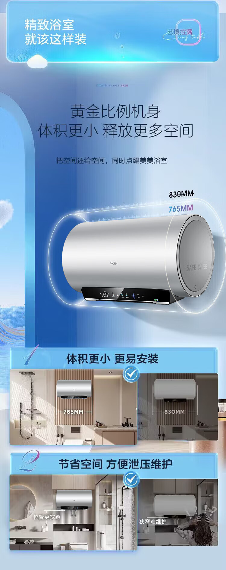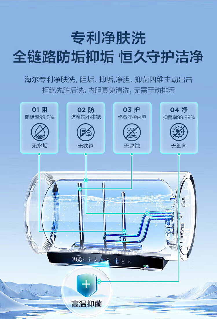 Haier (Haier) national subsidy 20% electric water heater 60 liters Xiaohonghua JH7 scale-free fresh water cleansing cleansing 3300W variable frequency fast heating first-class energy efficiency household water storage type
