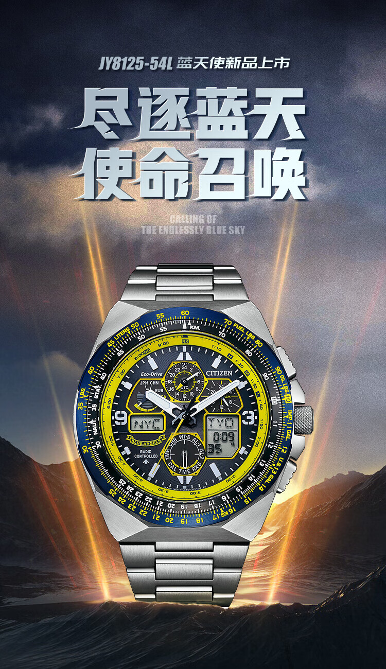 CITIZEN watch men's Japanese and Korean watch Blue Angel light kinetic energy day display steel belt fashionable Valentine's Day gift JY8125-54L