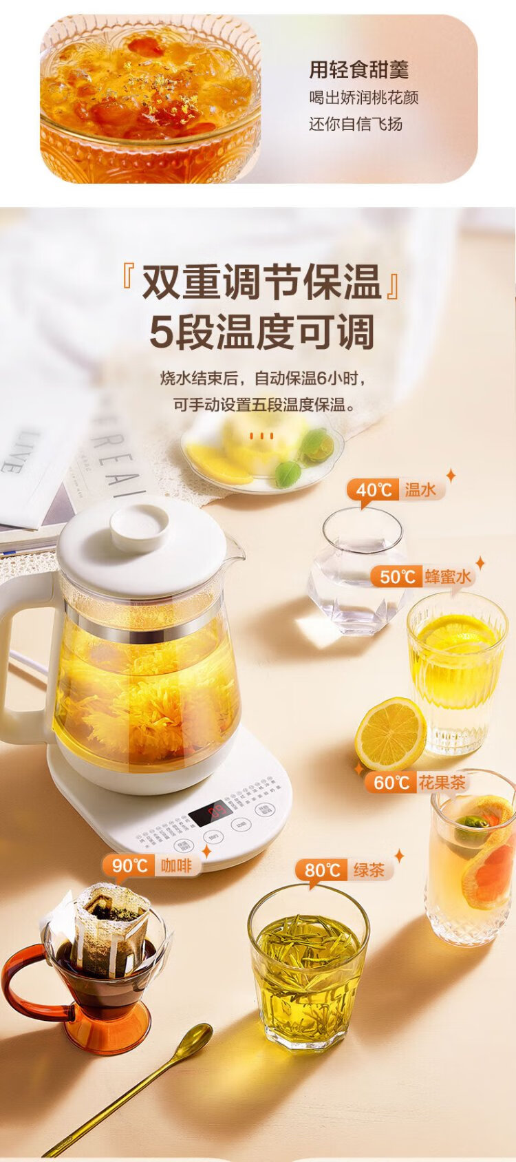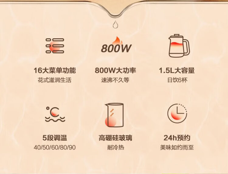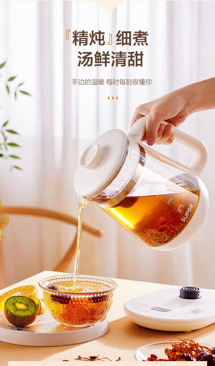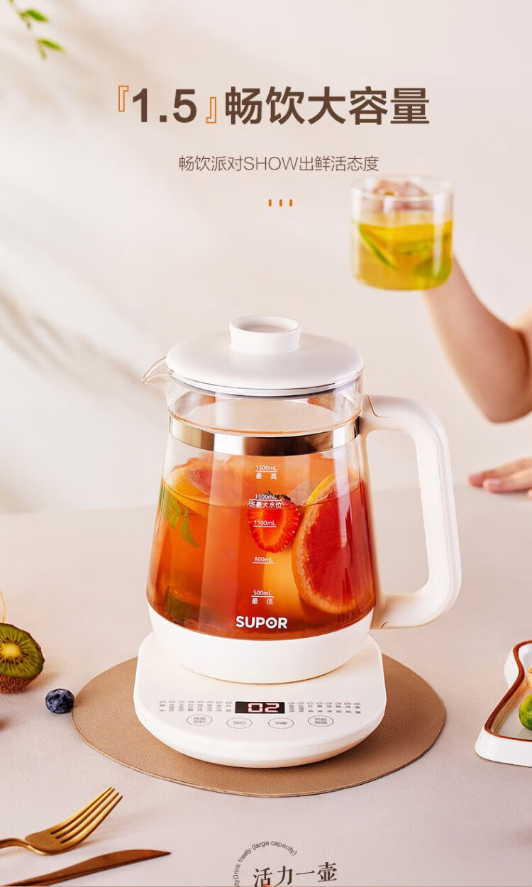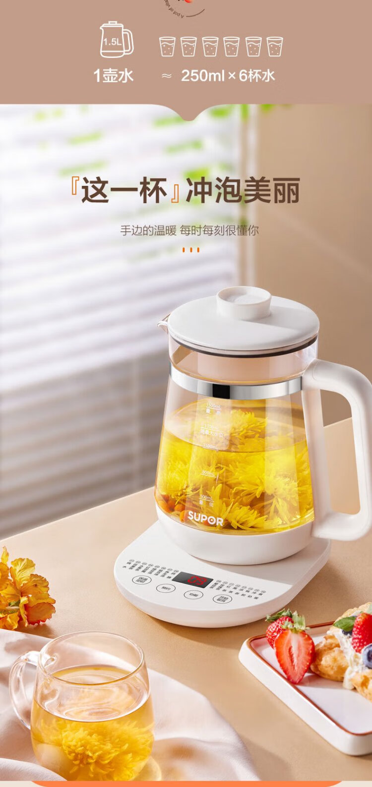 SUPOR ZMD peace of mind series 16 major menu functions 800W high power 5-stage temperature adjustment High borosilicate 24-hour appointment 1.5l capacity health pot SW-15Y19