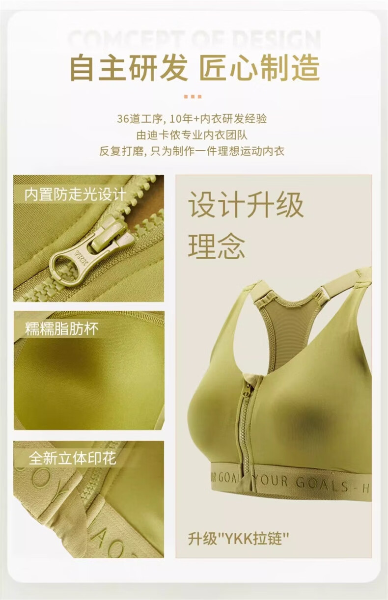 Decathlon sports bra large size strong support all-in-one bra quick drying olive green M4729927