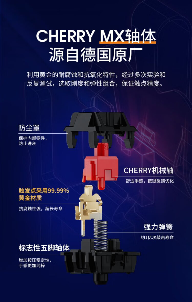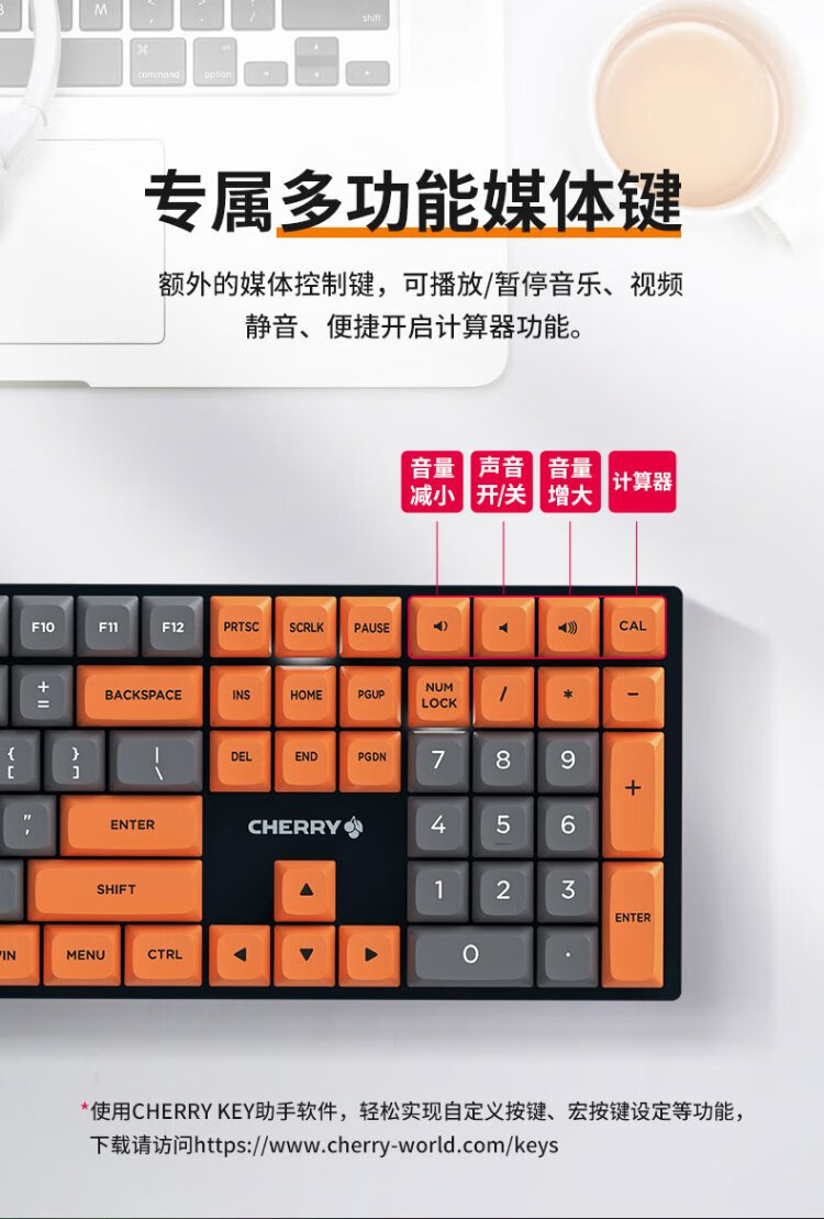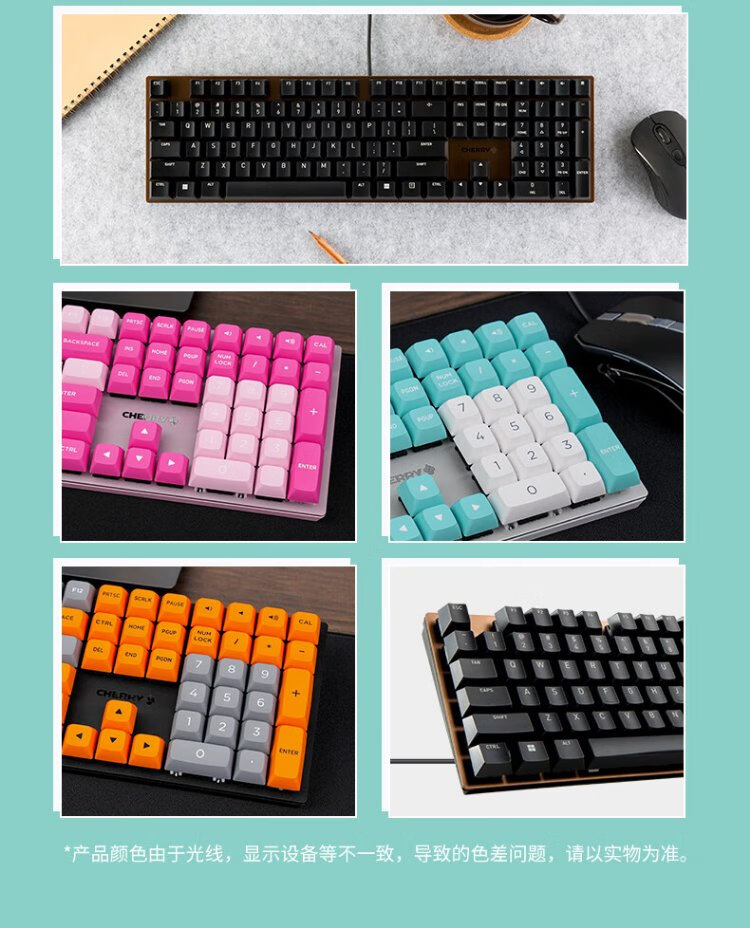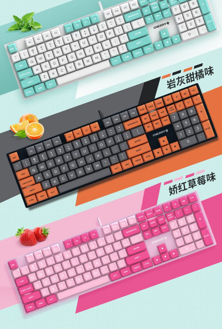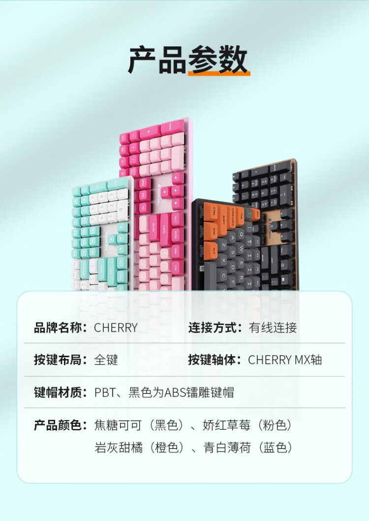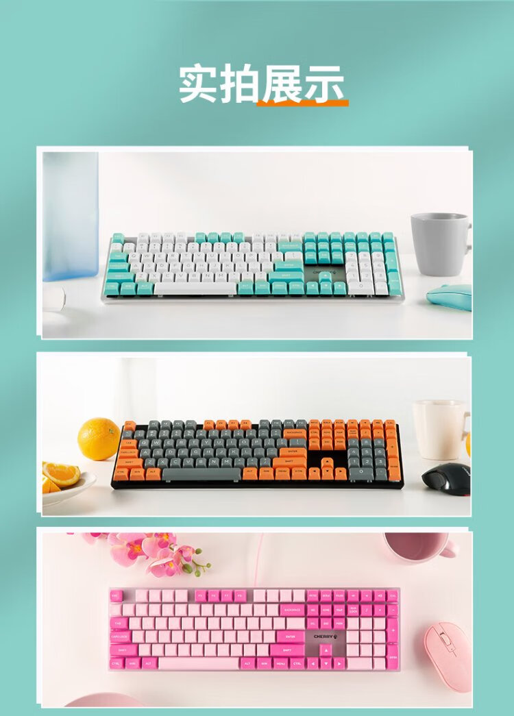 CHERRY Cherry KC200 mechanical keyboard office gaming keyboard computer keyboard mechanical blue and white color matching customized keyboard PBT keycap wired keyboard red axis