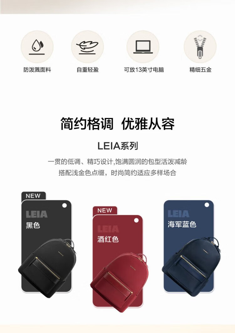 Samsonite Backpack 13-inch Computer Bag Women's Backpack College Student Bag Simple Fashion Travel Bag TQ4