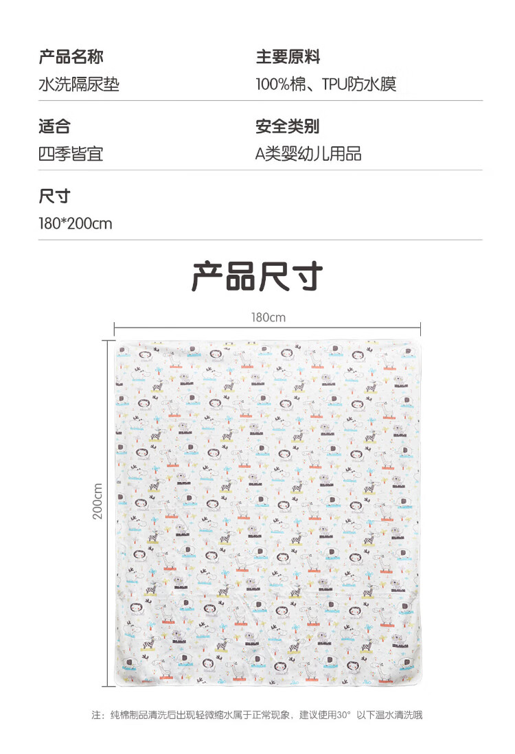Encore New Baby Diaper Mat Large Washable Sheet Baby Diaper Anti-fouling Mattress Sheet Zoo Style 180*200cm