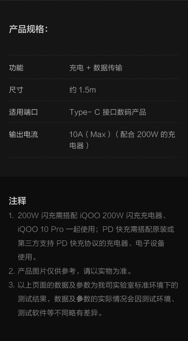 Vivo iQOO official original Type-C 10A flash charging data cable iqoo11iqoo10vivo original flash charging cable OPPO Xiaomi Honor Apple and other mobile phones universal