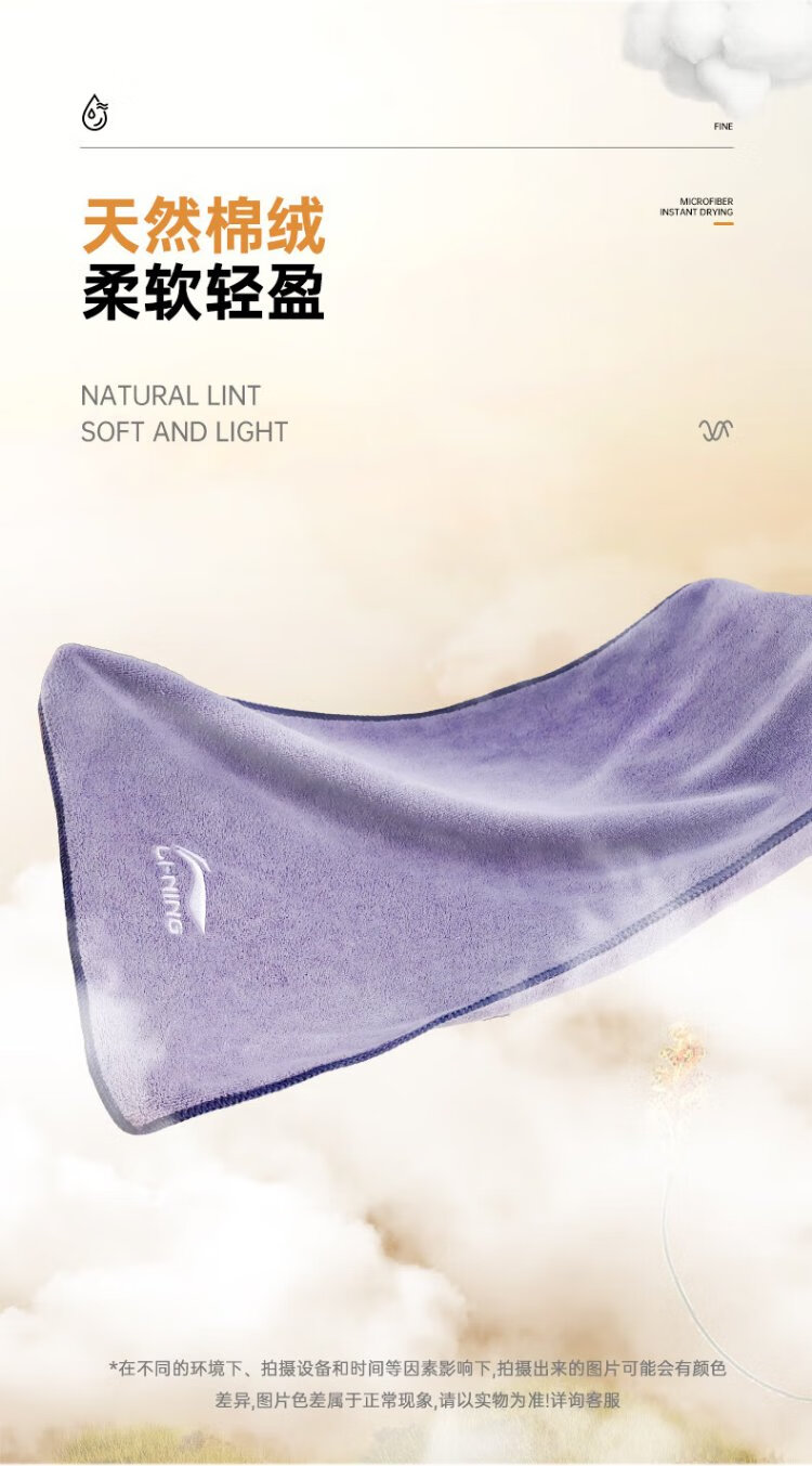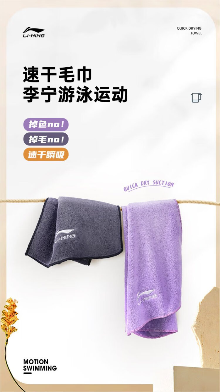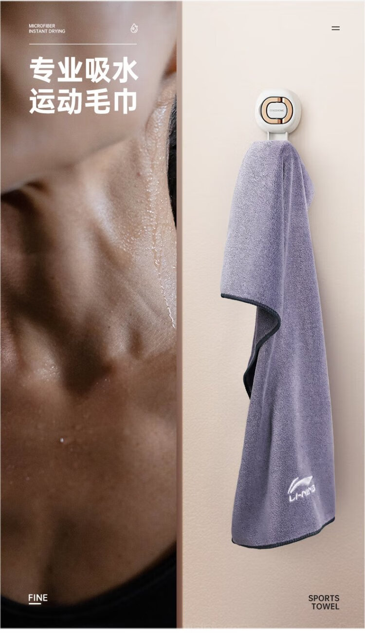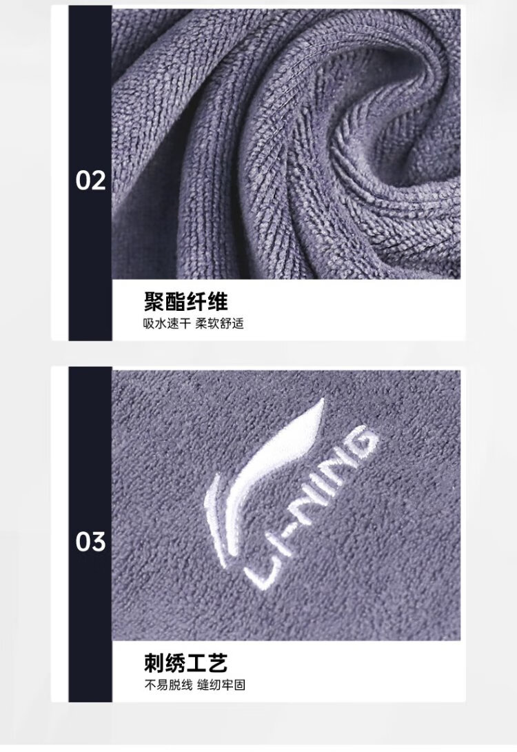 Li Ning (LI-NING) Swimming Sports Absorbent Towel Fitness Badminton Sports Sweat-Absorbent Towel Extra Large 8694 Blue Gray Purple
