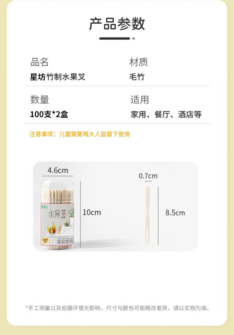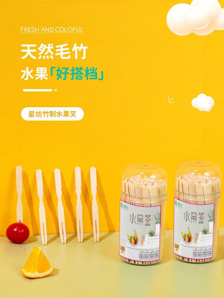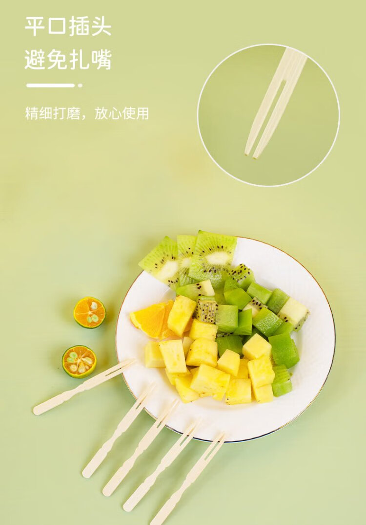Xingfang Disposable Fork Bamboo Fork 2-tube Pack 200 Fruit Picks Fruit Fork Cake Fork Dessert Fork