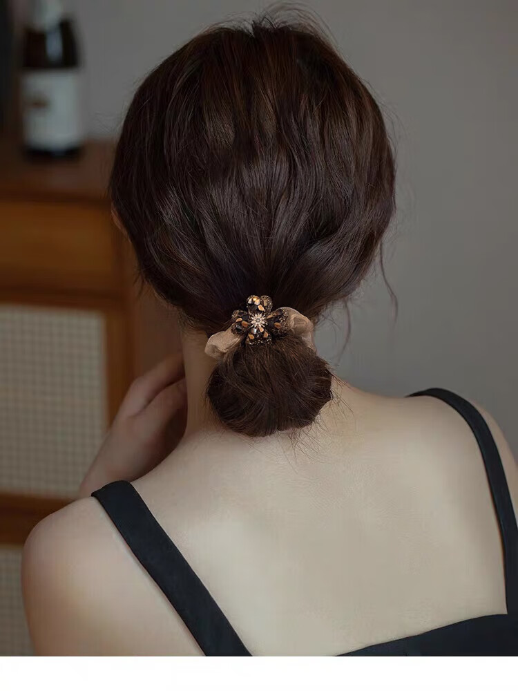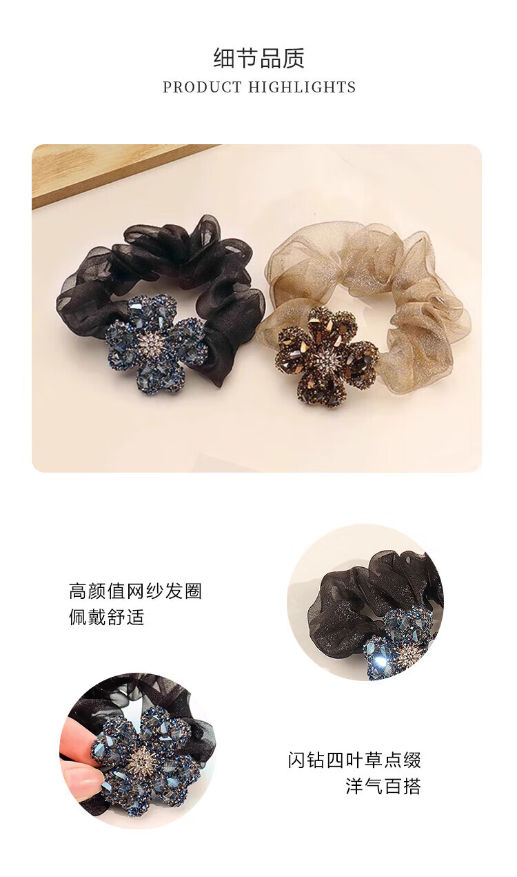 Xiangwan 2-piece set of hair ties, rhinestones, four-leaf clover, hair ties, ponytail, rubber band, large intestine hair rope, girl's birthday gift