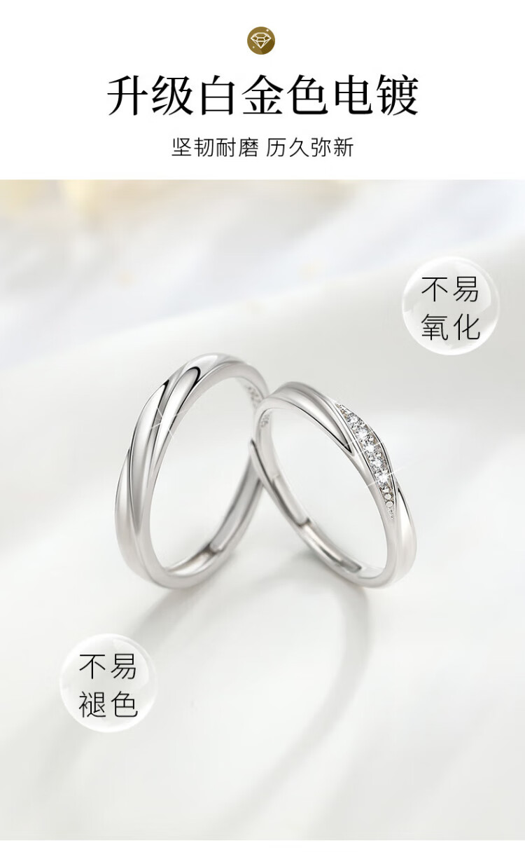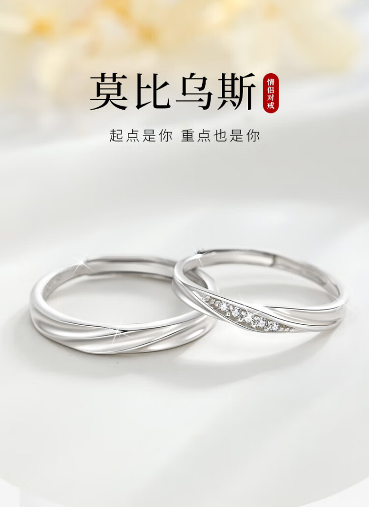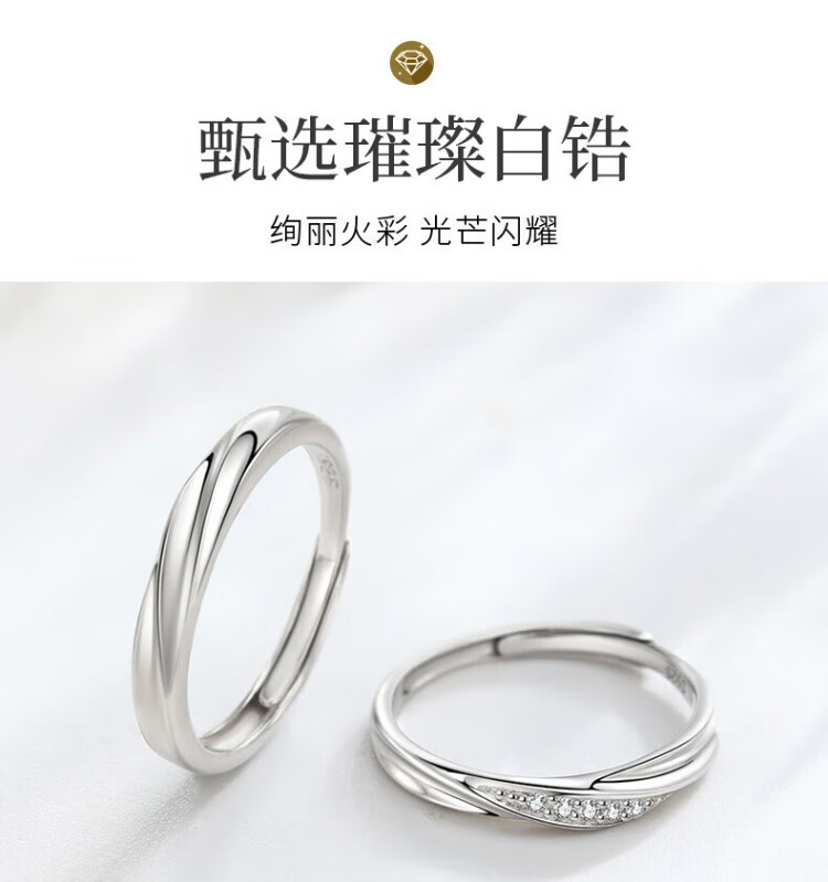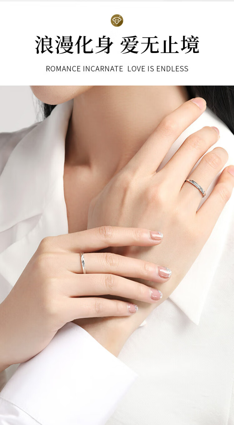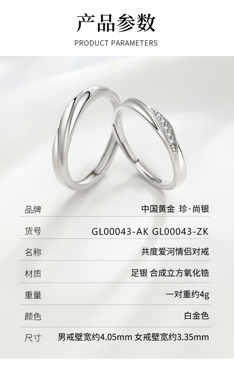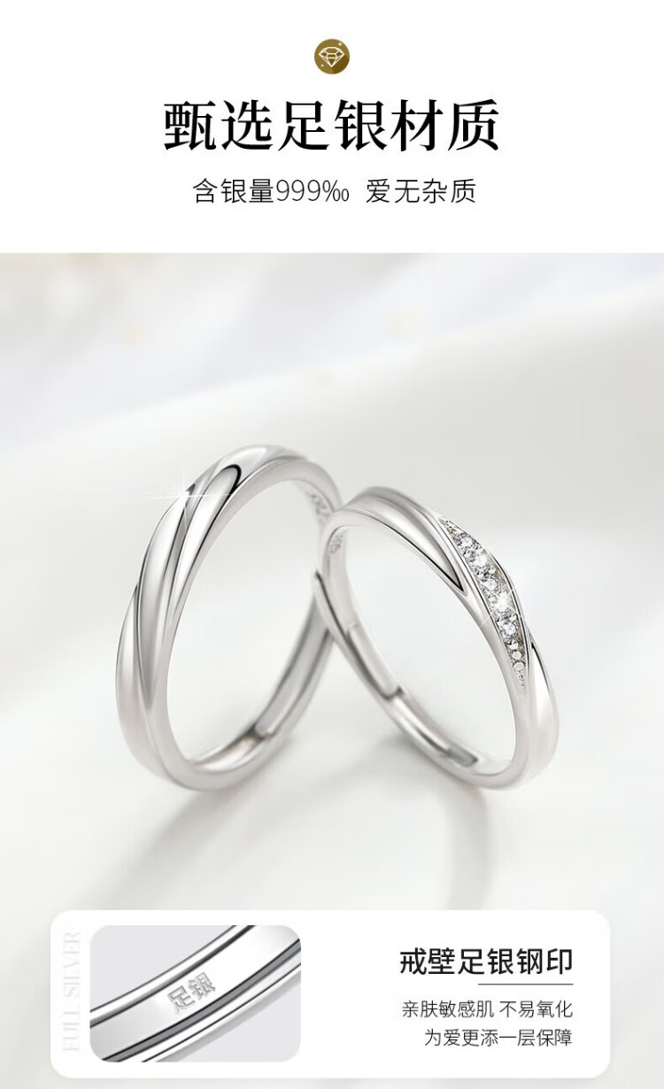 Zhen Shang Yin China Gold Authorized Couple Ring Silver Ring Birthday Wedding Anniversary Gift for Girlfriend and Wife Pure Silver