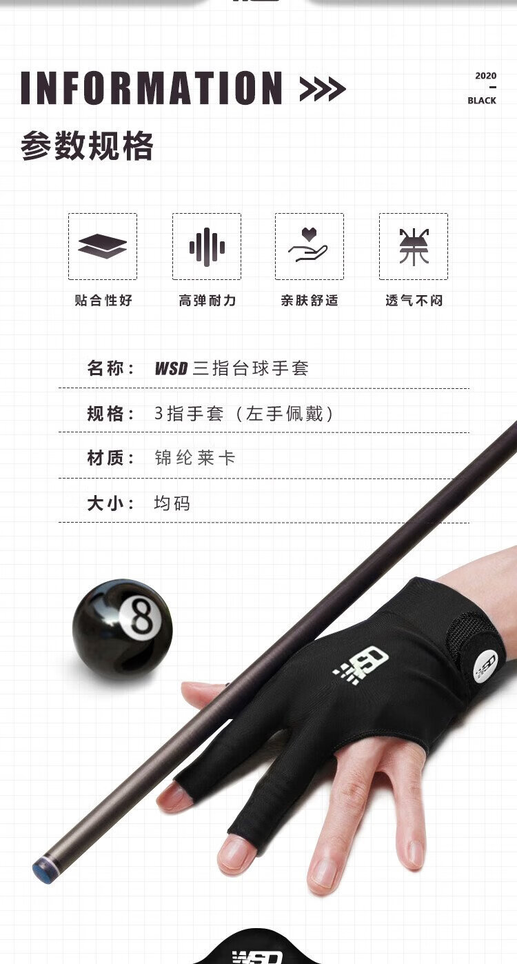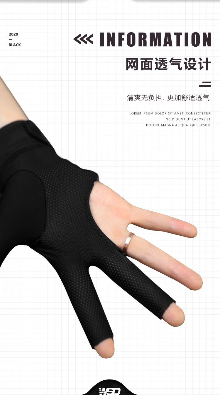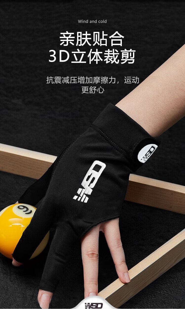 Wisdom professional billiards gloves, three-finger breathable, non-slip special table cue and billiards accessories, left hand