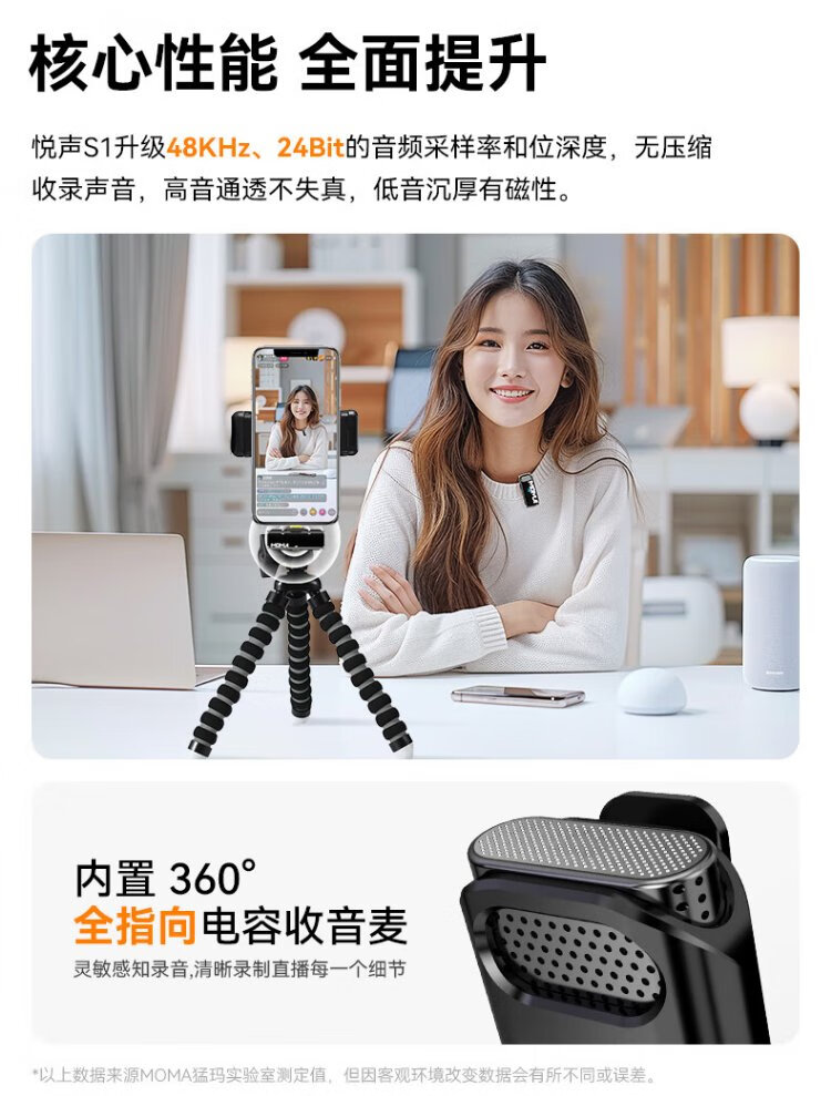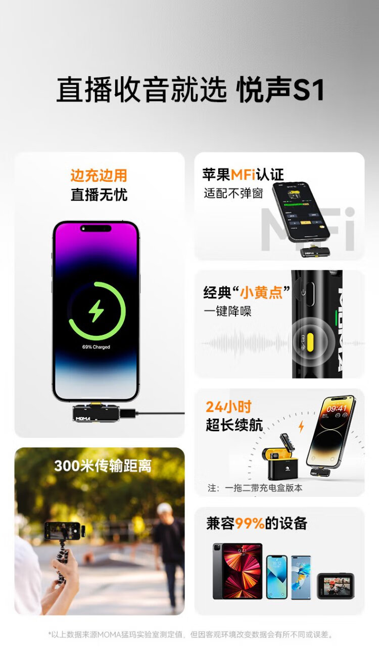 MOMA Yuesheng S1 Wireless Microphone Live Noise Reduction Lavalier Microphone MOMA Mammoth S1 One-to-Two Microphones Android Phone Directly Plug into Vlog Outdoor Interview Recording Sound Card Radio Microphone