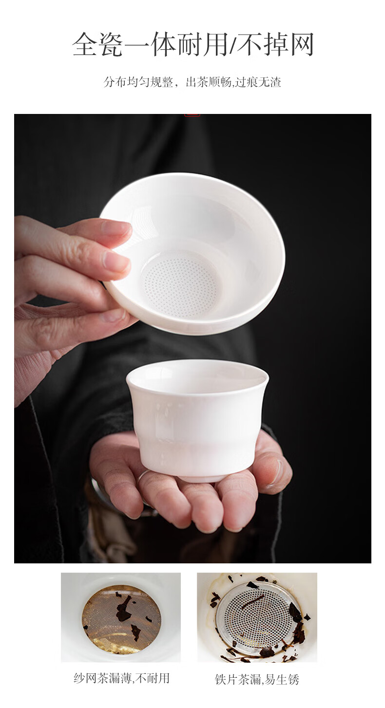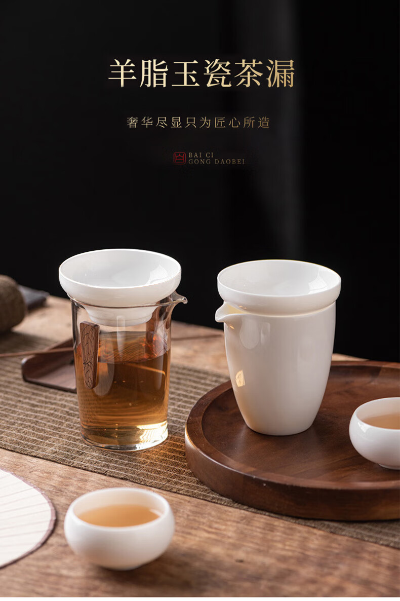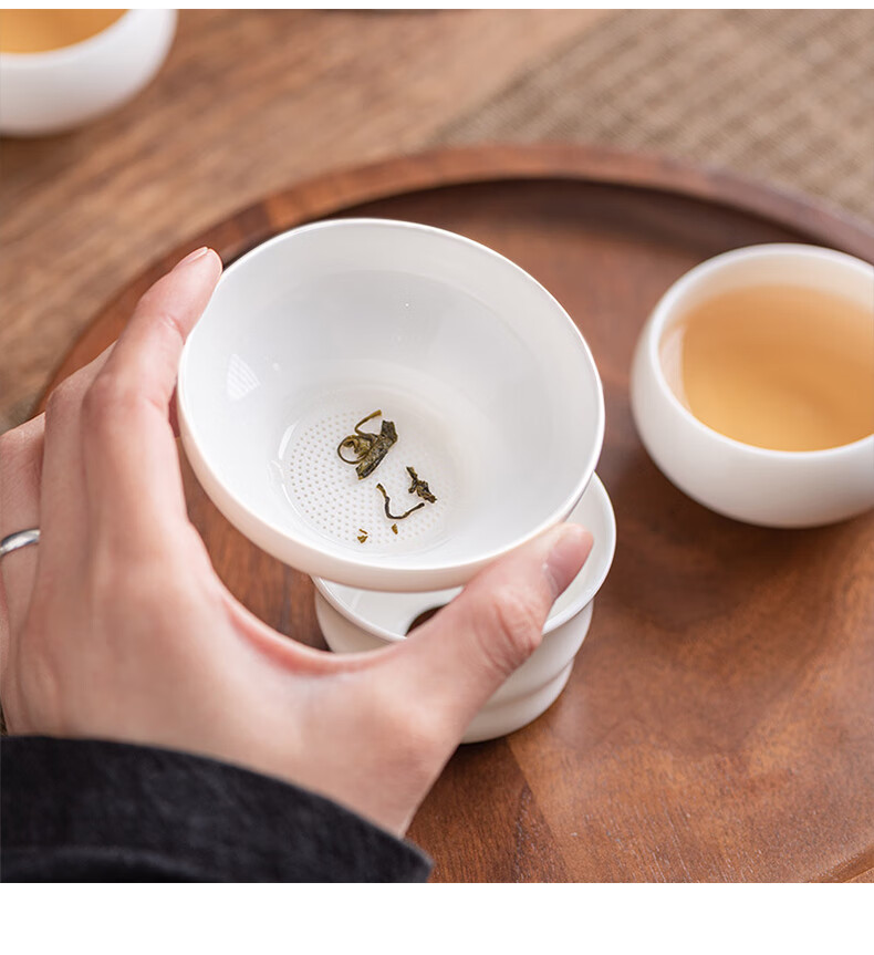 Edo tea leaking tea filter white porcelain tea filter tea water separation tea making ceramic fair cup integrated tea filter tea set