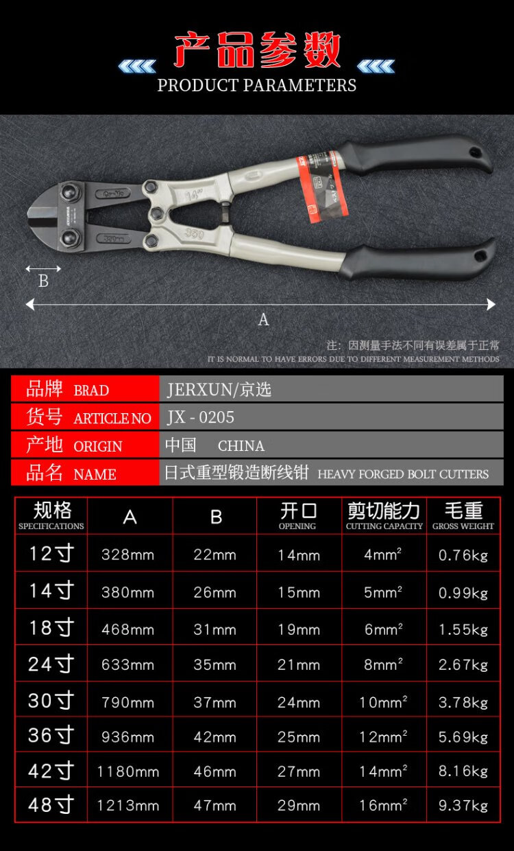 JERXUN steel bar cutter, steel bar pliers, powerful scissors, labor-saving, multi-functional wire cutting pliers, wire cutters, large pliers, wire-breaking pliers, olecranon pliers, locking pliers, tool scissors