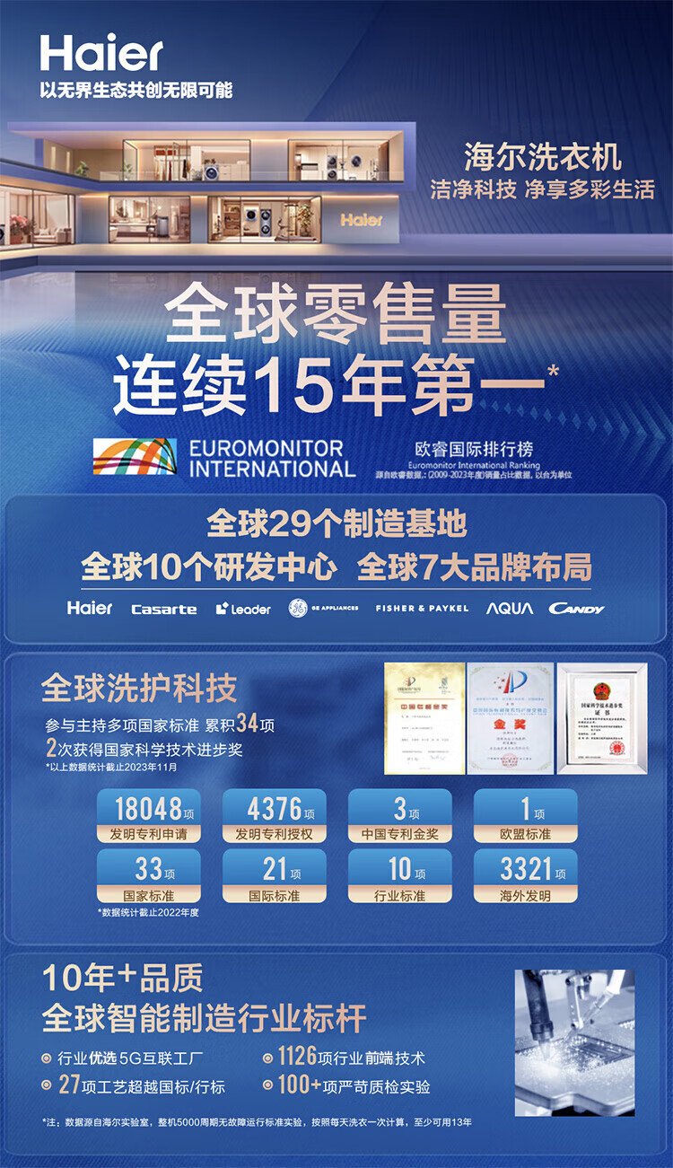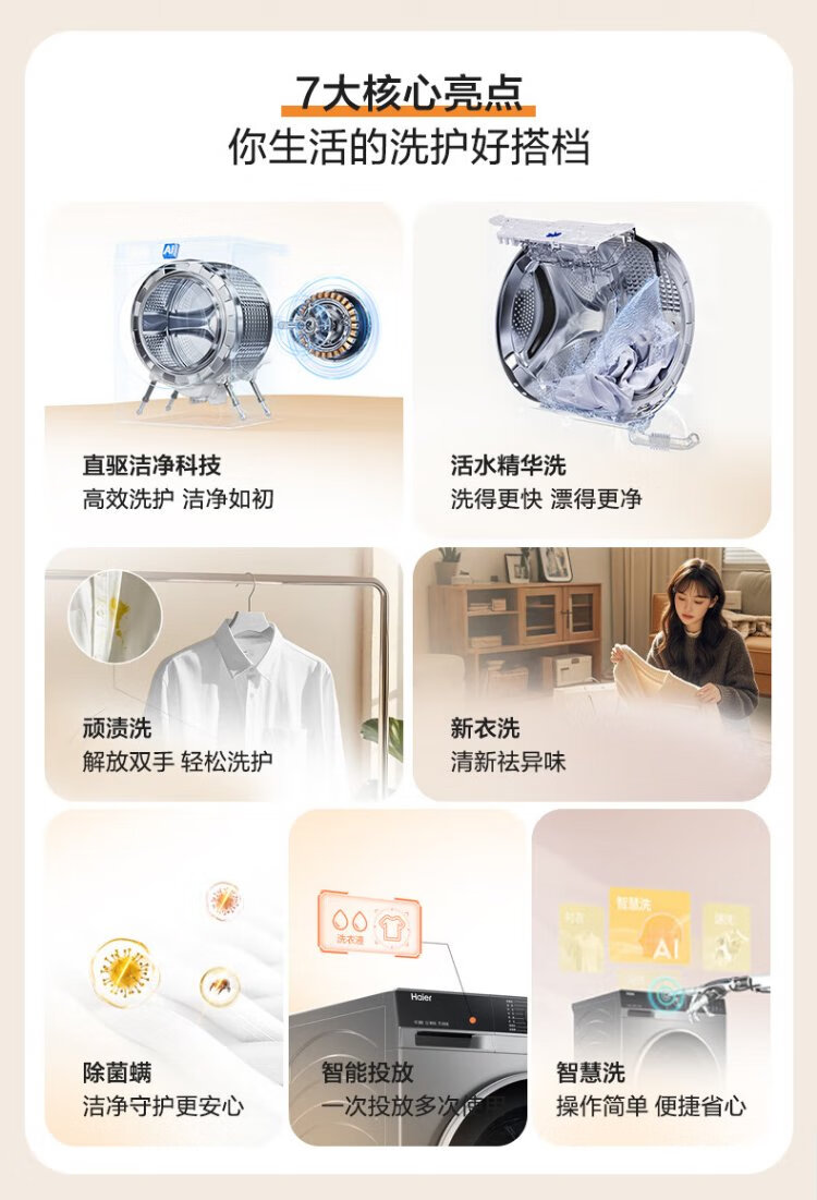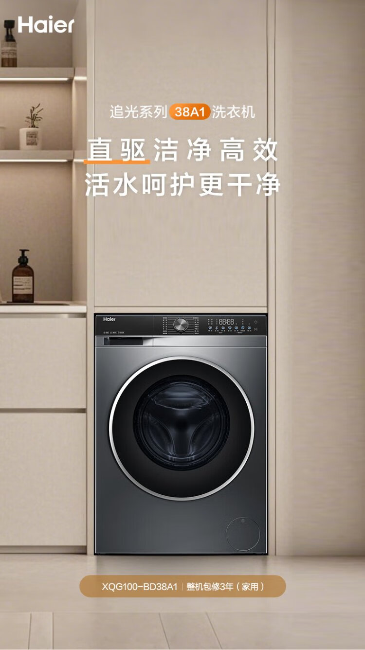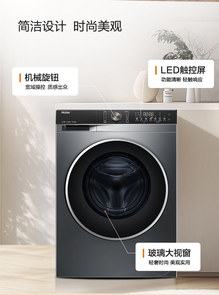 Haier drum washing machine 10KG 25 years new product fully automatic first-class energy efficiency direct drive frequency conversion + ultra-thin embedded + essence washing + smart investment government subsidy XQG100-BD38A1