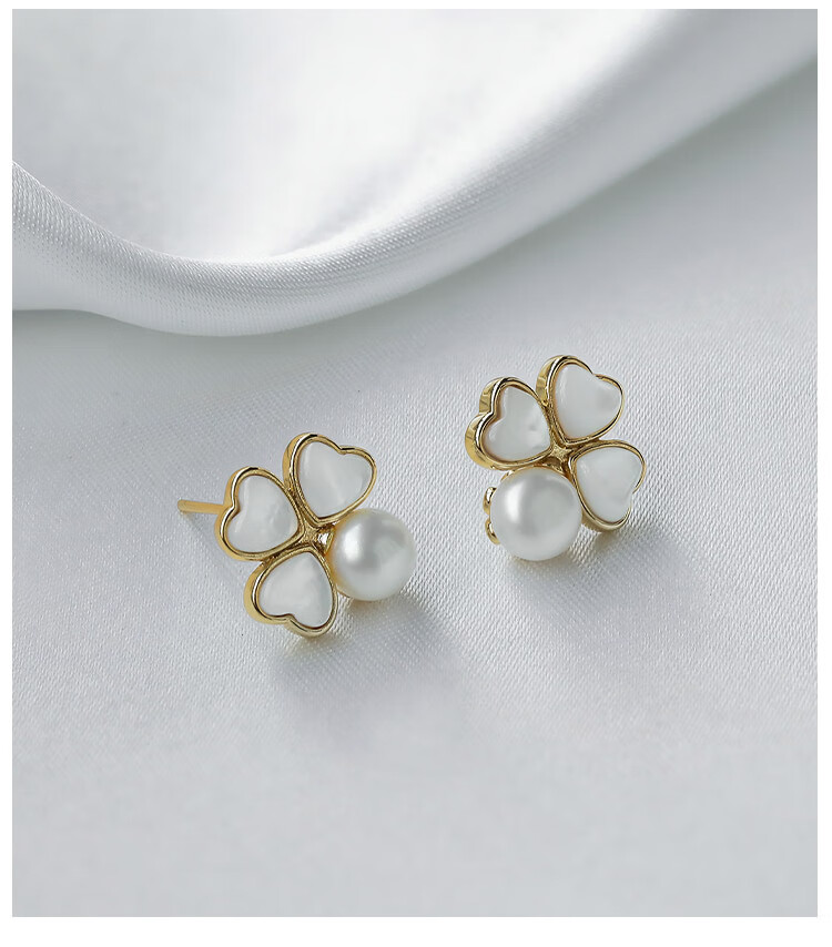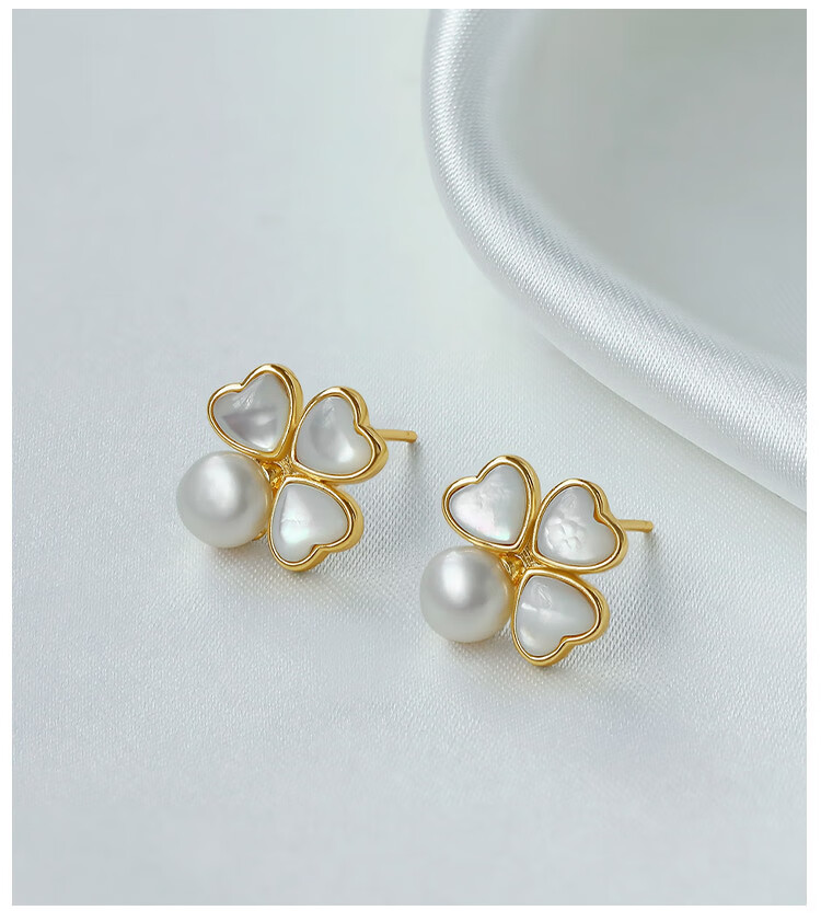 Queen of Pearls Four Leaf Clover Freshwater Pearl Earrings Elegant Pearl Earrings Best Friend Birthday Gift for Women