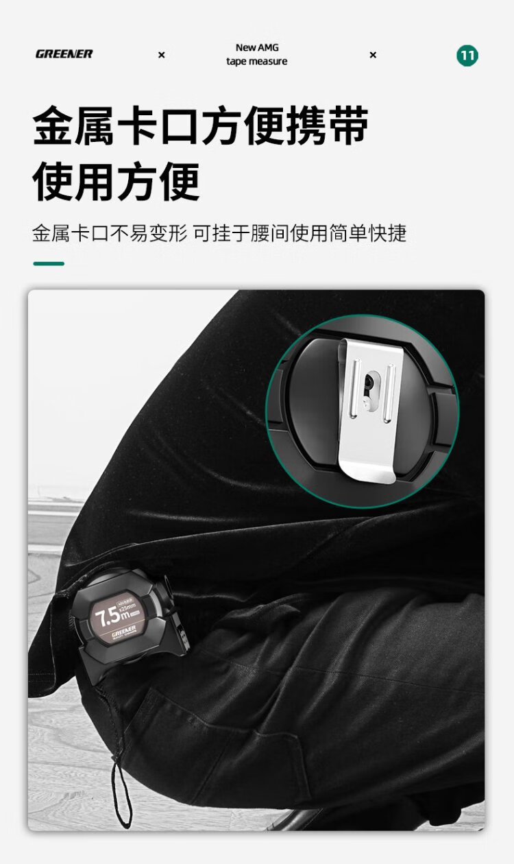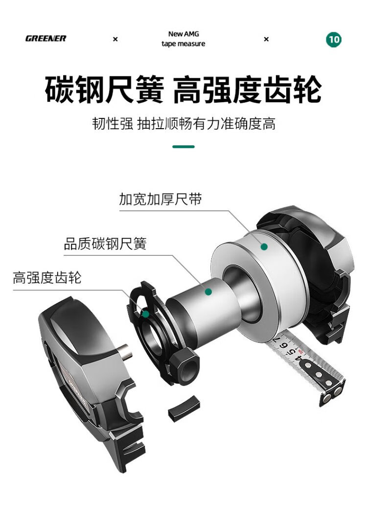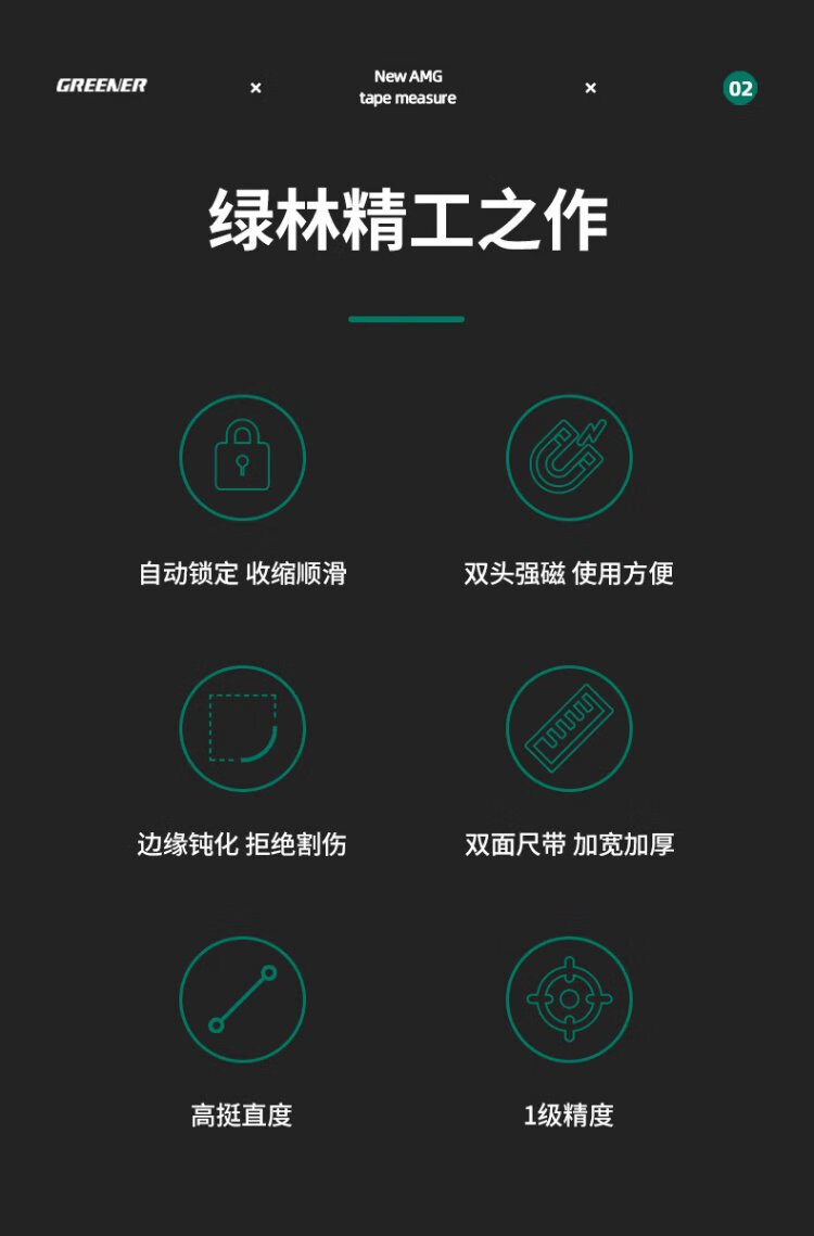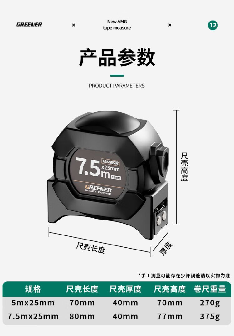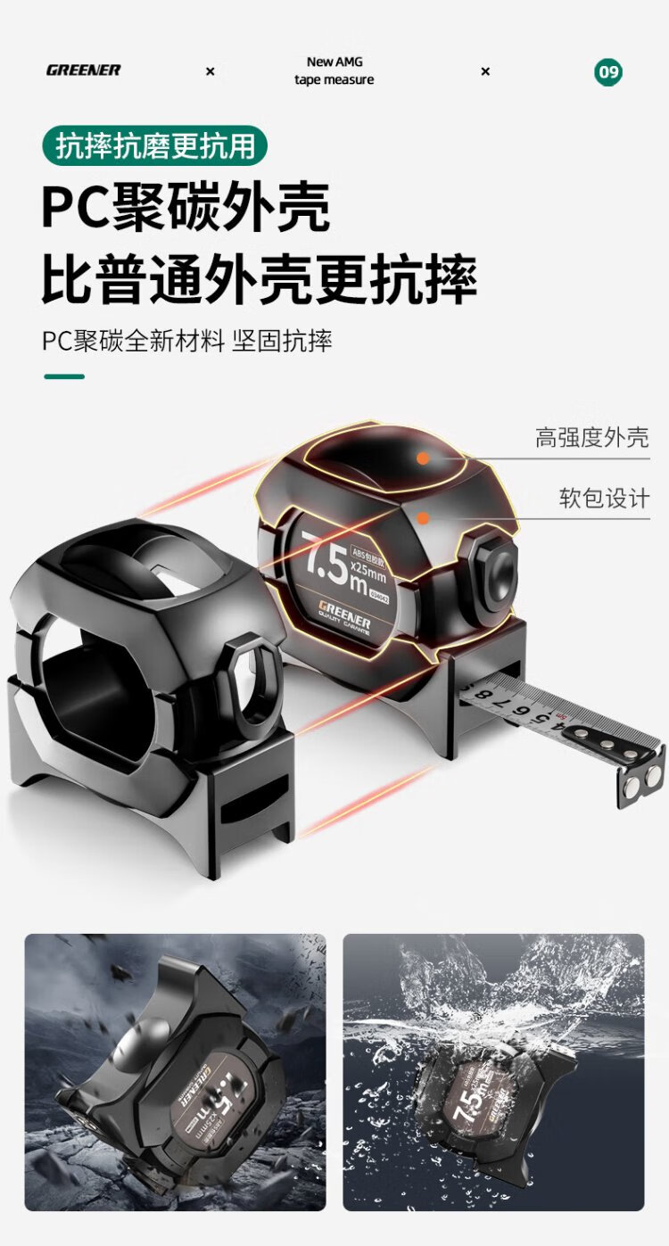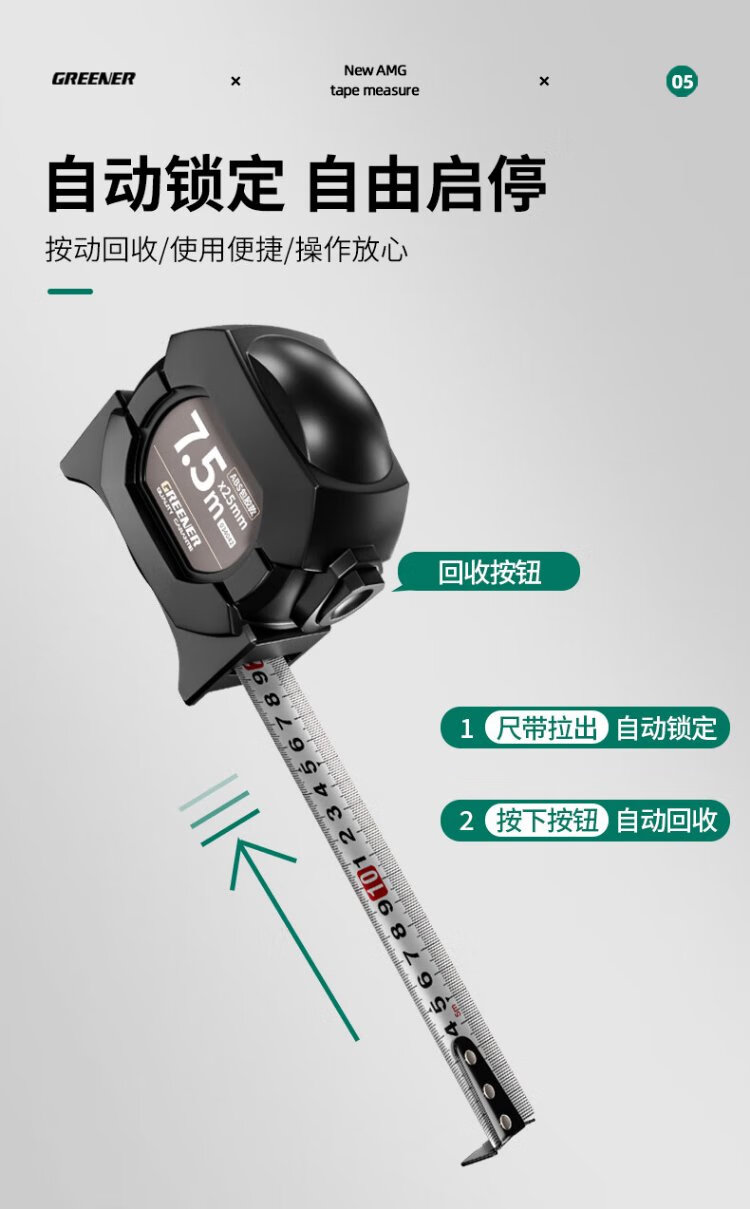 GREENER steel tape measure household 5-meter wear-resistant anti-fall high-precision self-locking ruler 5 meters * 25mm