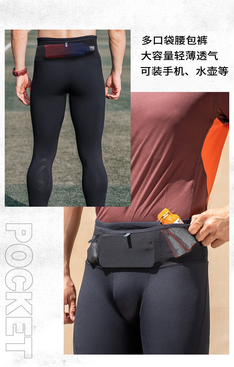 Flipbelt fitness shark pants sports training running quick-drying tight compression waist bag pants classic black S