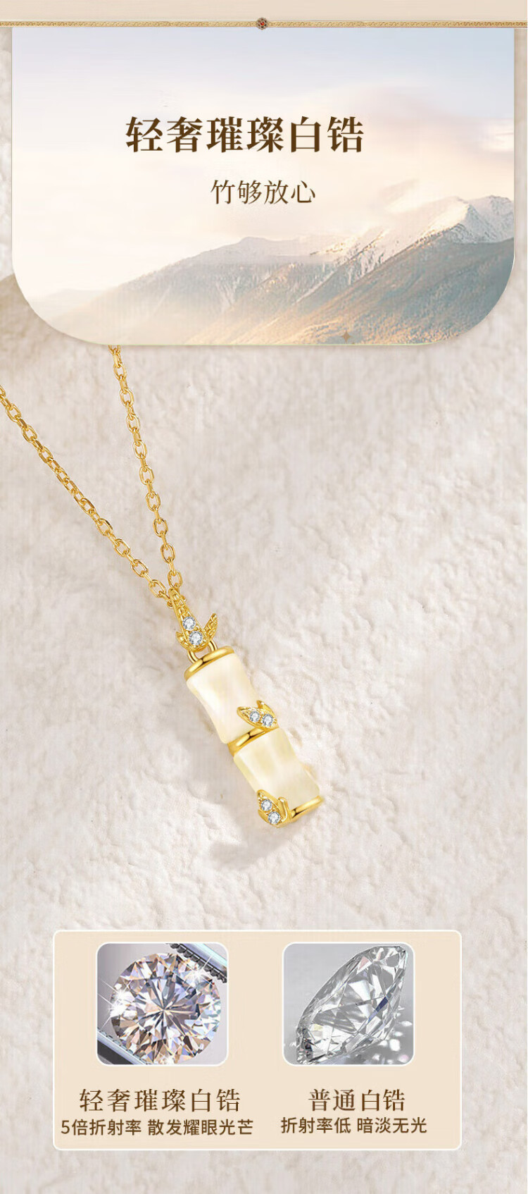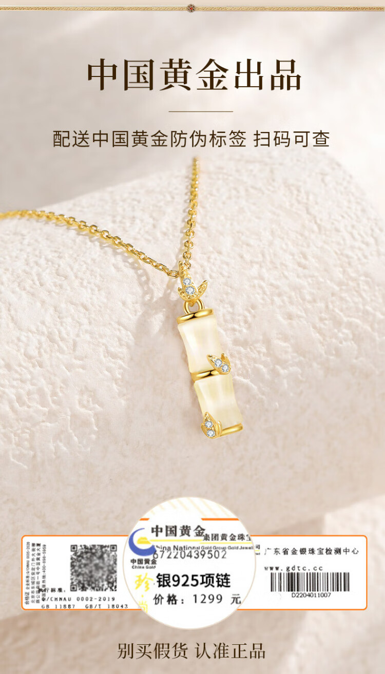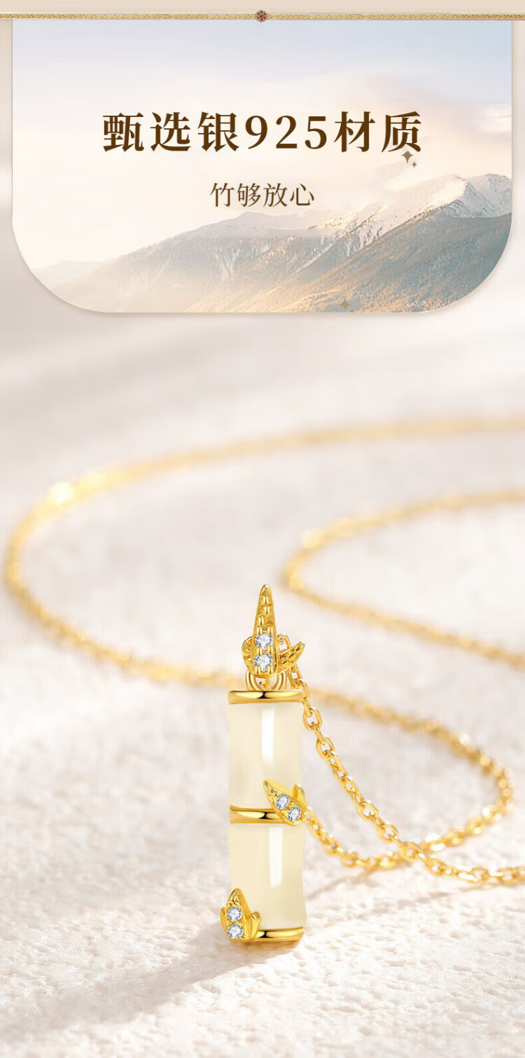 Zhen Shang Silver Chinese Gold Bamboo Silver Necklace Girls 2025 New Light Luxury Niche Birthday Gift Practical for Girlfriend and Wife