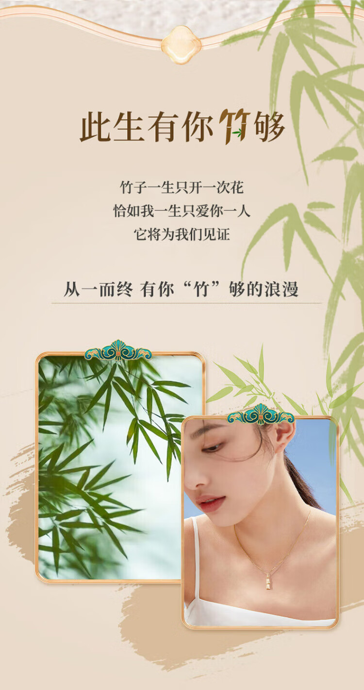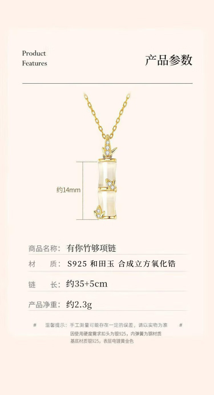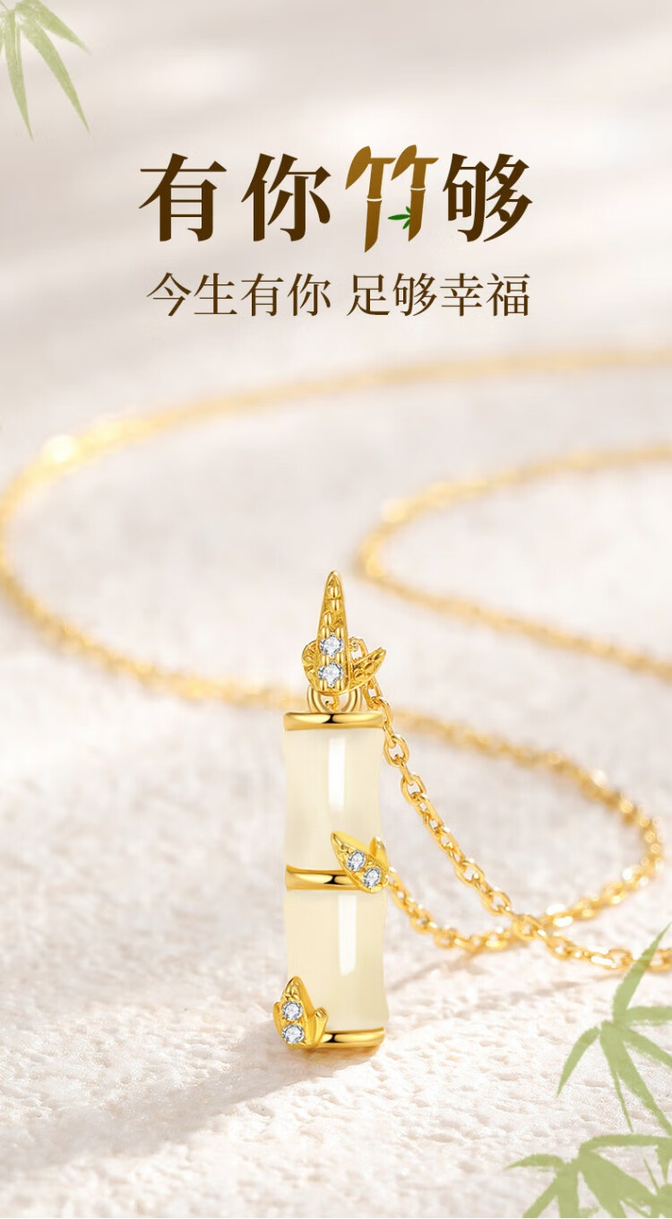 Zhen Shang Silver Chinese Gold Bamboo Silver Necklace Girls 2025 New Light Luxury Niche Birthday Gift Practical for Girlfriend and Wife