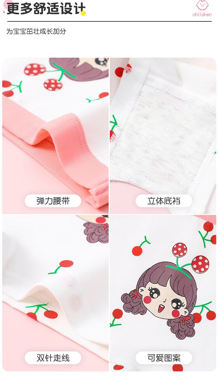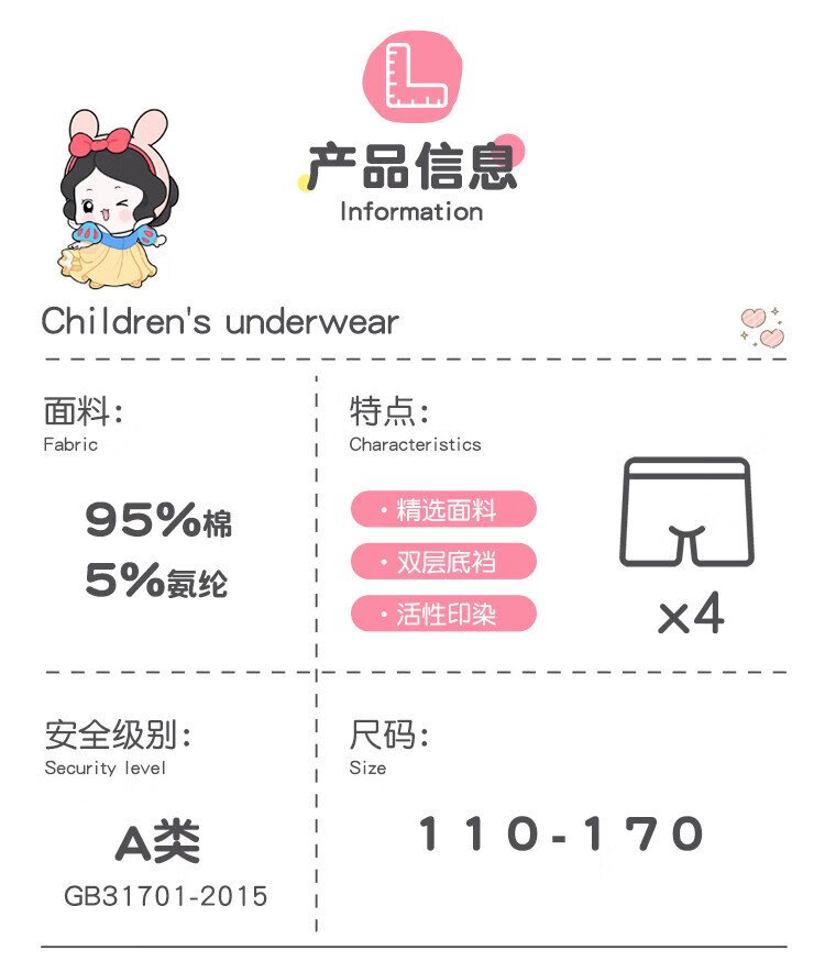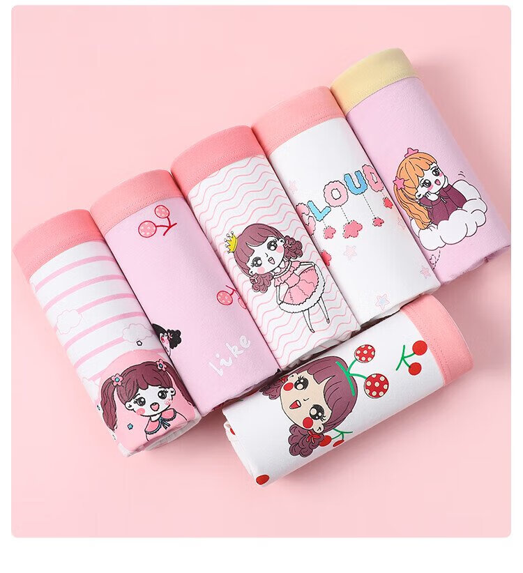 LangSha children's underwear girls boxer type A cotton medium and large children's girl shorts Cherry Princess 6 pack 130