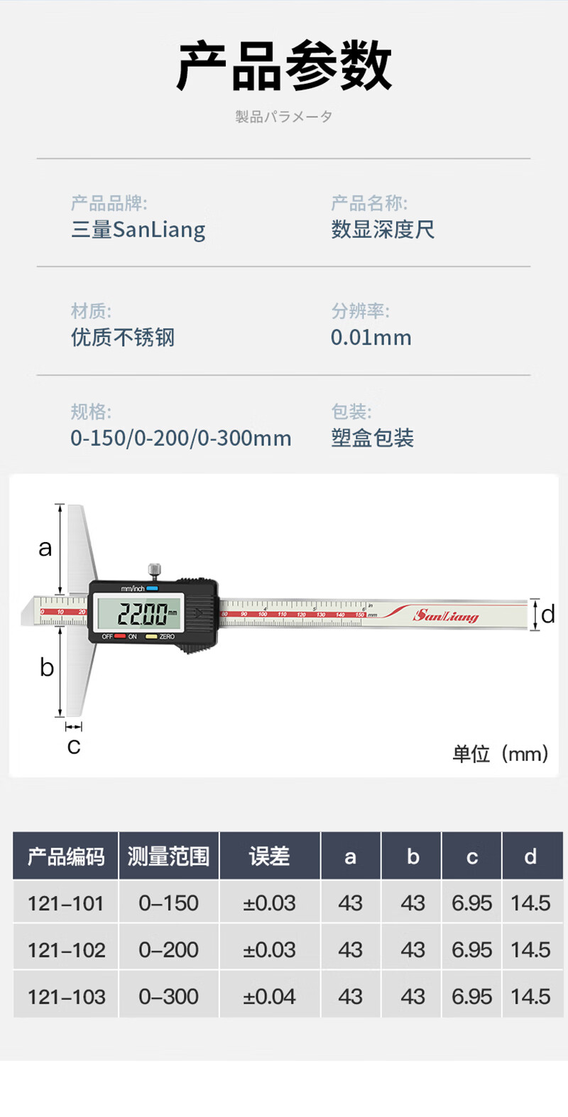 Three-quantity electronic depth gauge with table high-precision digital display depth vernier caliper 0-150mm0-200-300-500 JD081 digital display 0-150mm