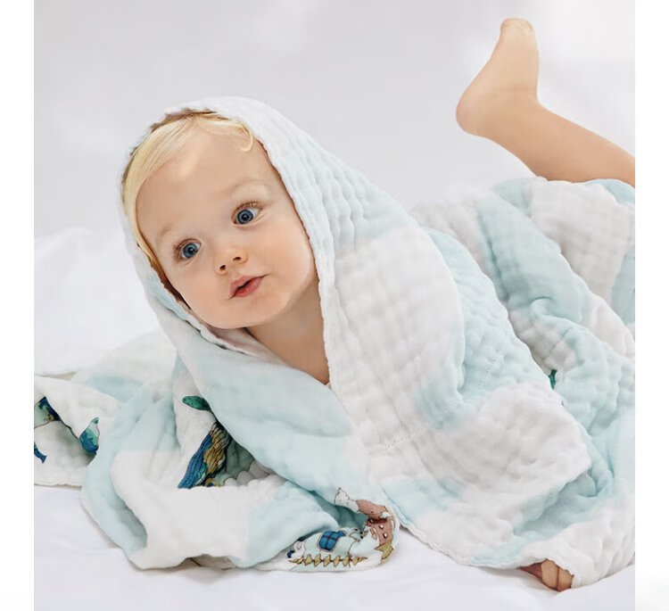Babycare children's bath towel super soft absorbent gauze newborn baby bath towel baby 95*95-Cloud Moon Rabbit