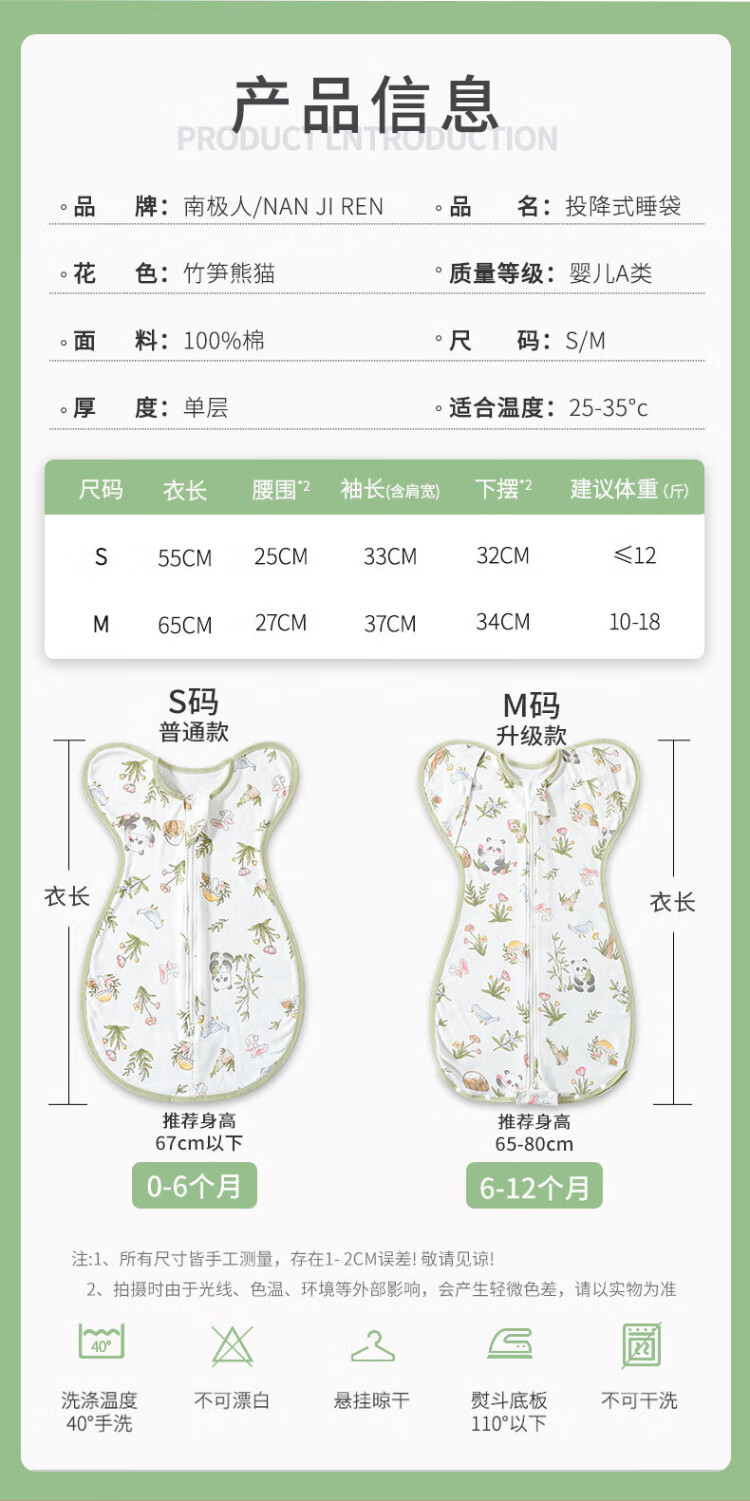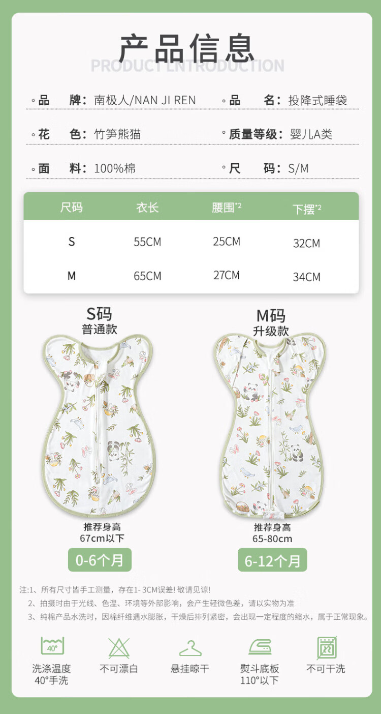 Nanjiren Newborn Baby Anti-jump Sleeping Bag Pure Cotton Baby Swaddle Wrap Children's Surrender Anti-Kick Quilt Four Seasons S Size