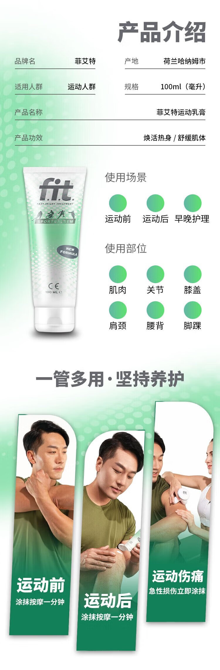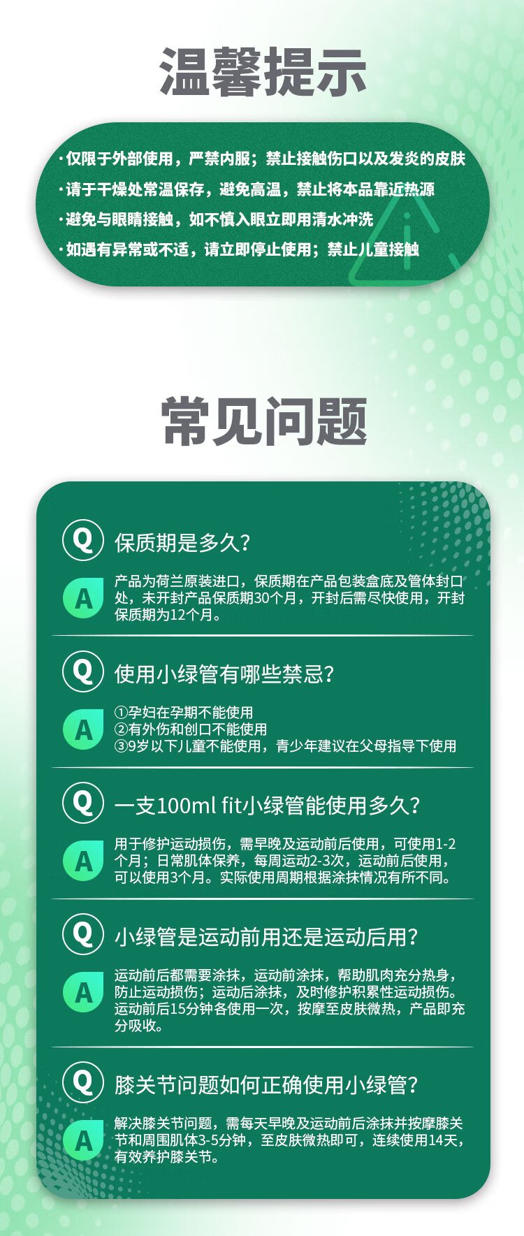 Fiat imported from the Netherlands fit small green tube sports protective cream warm-up cream joint massage cream unisex 100ml