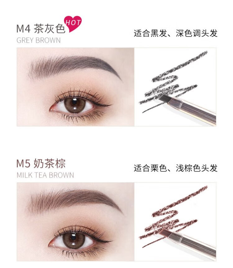 FLORTTE rotating double-headed ultra-fine eyebrow pencil waterproof and sweat-proof, long-lasting and non-fading wild eyebrow gift B4# smoke gray