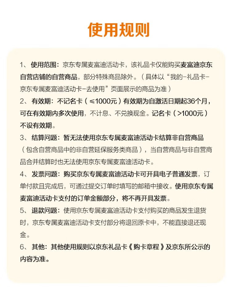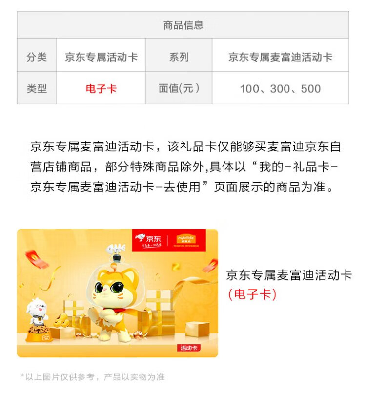 JD.com’s exclusive MacFudi activity card with a face value of 500 (electronic gift card)