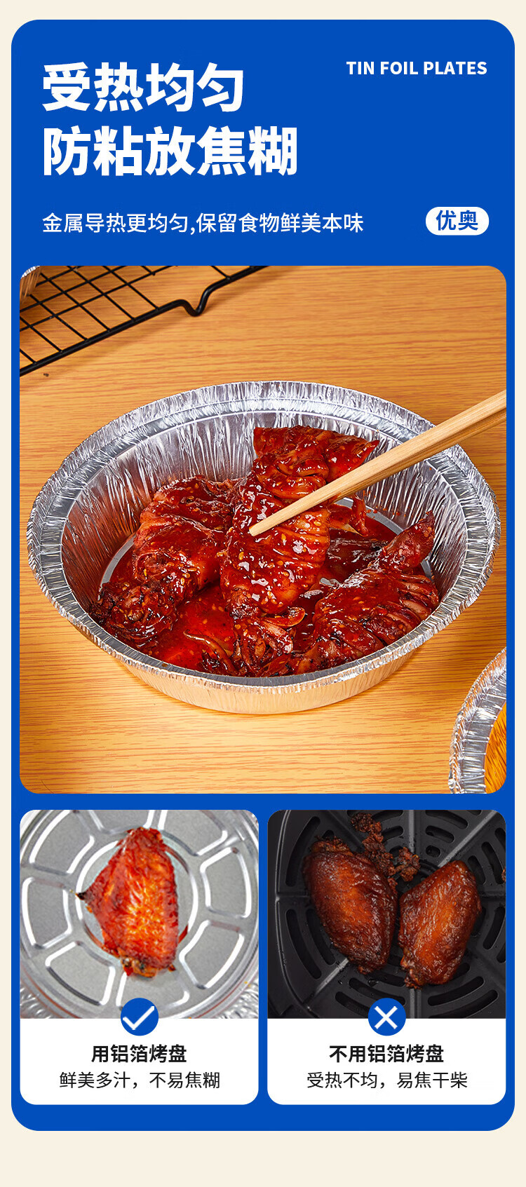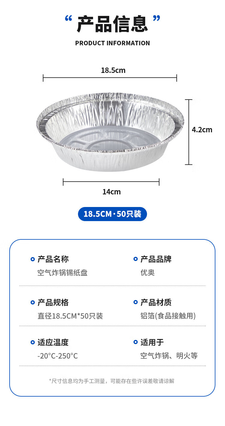 Youao air fryer tinfoil tray 18.5cm*50 pieces thickened air fryer special paper pad food grade tinfoil bowl