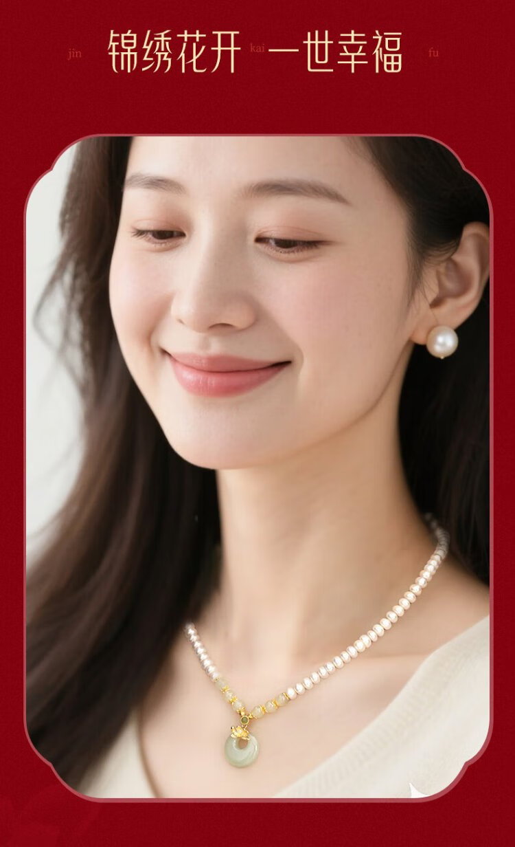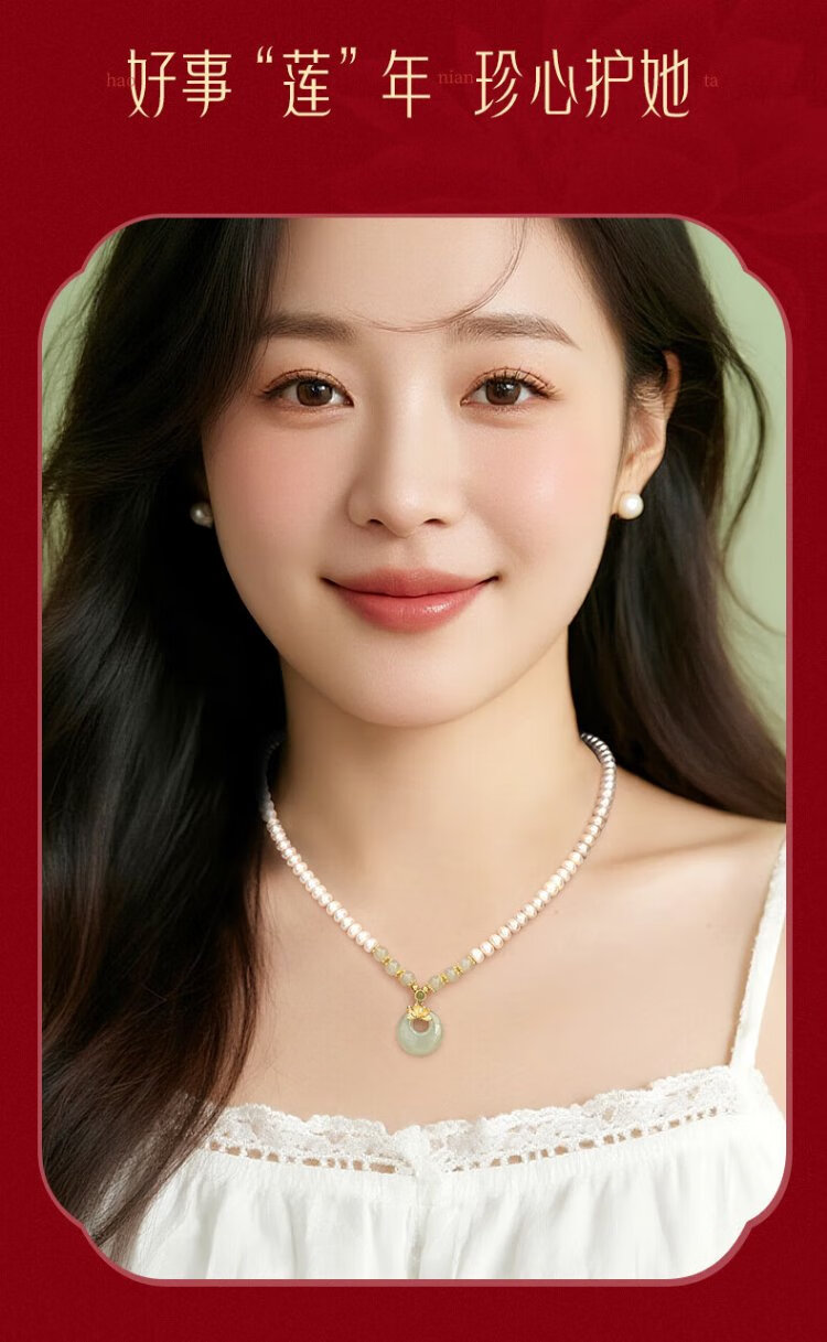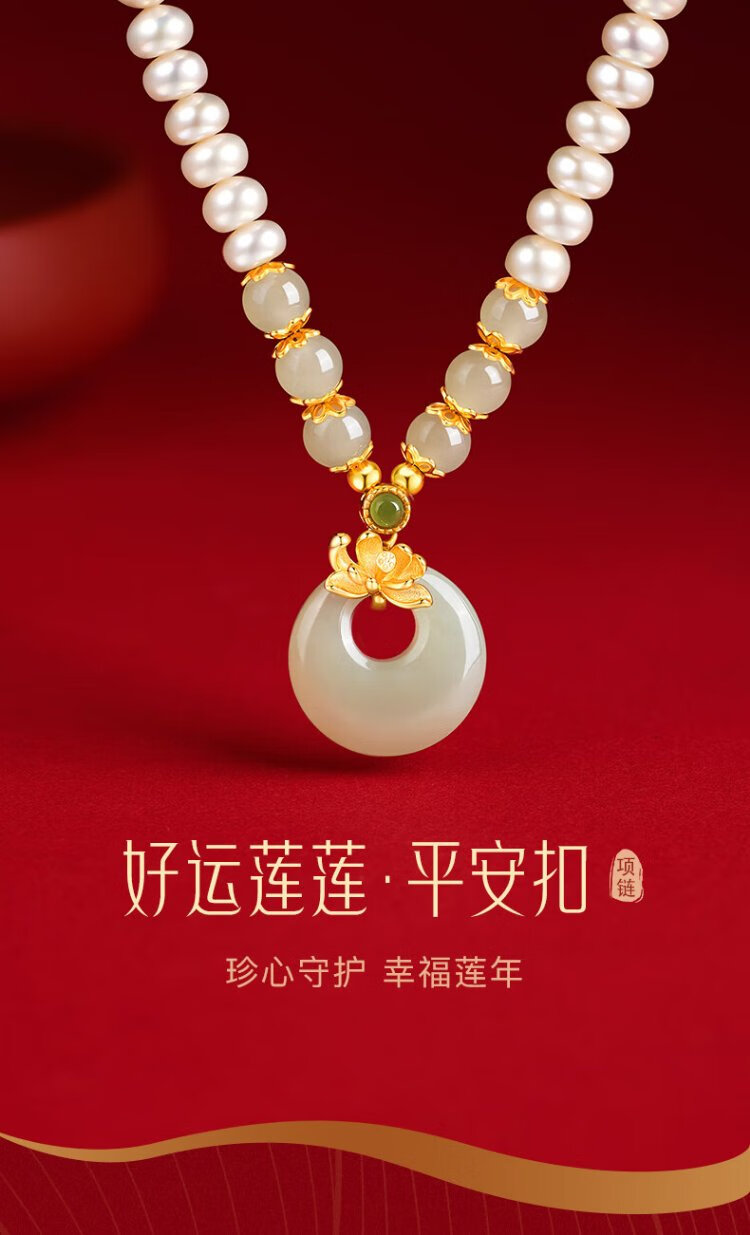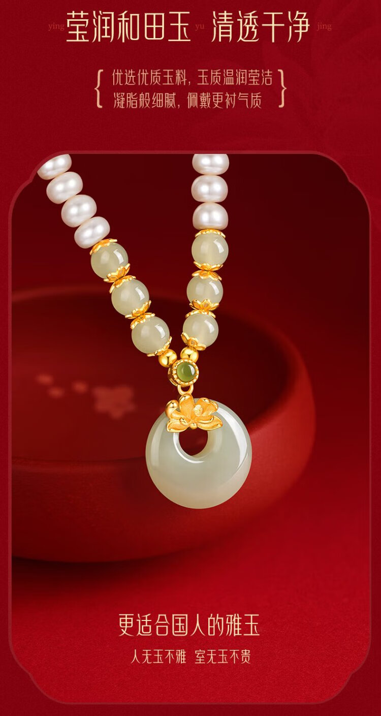Zhen Shang Silver Chinese Gold Pearl Silver Necklace Women's Peace Button Jade Pendant Mom Mother's Birthday Christmas Gift for Wife