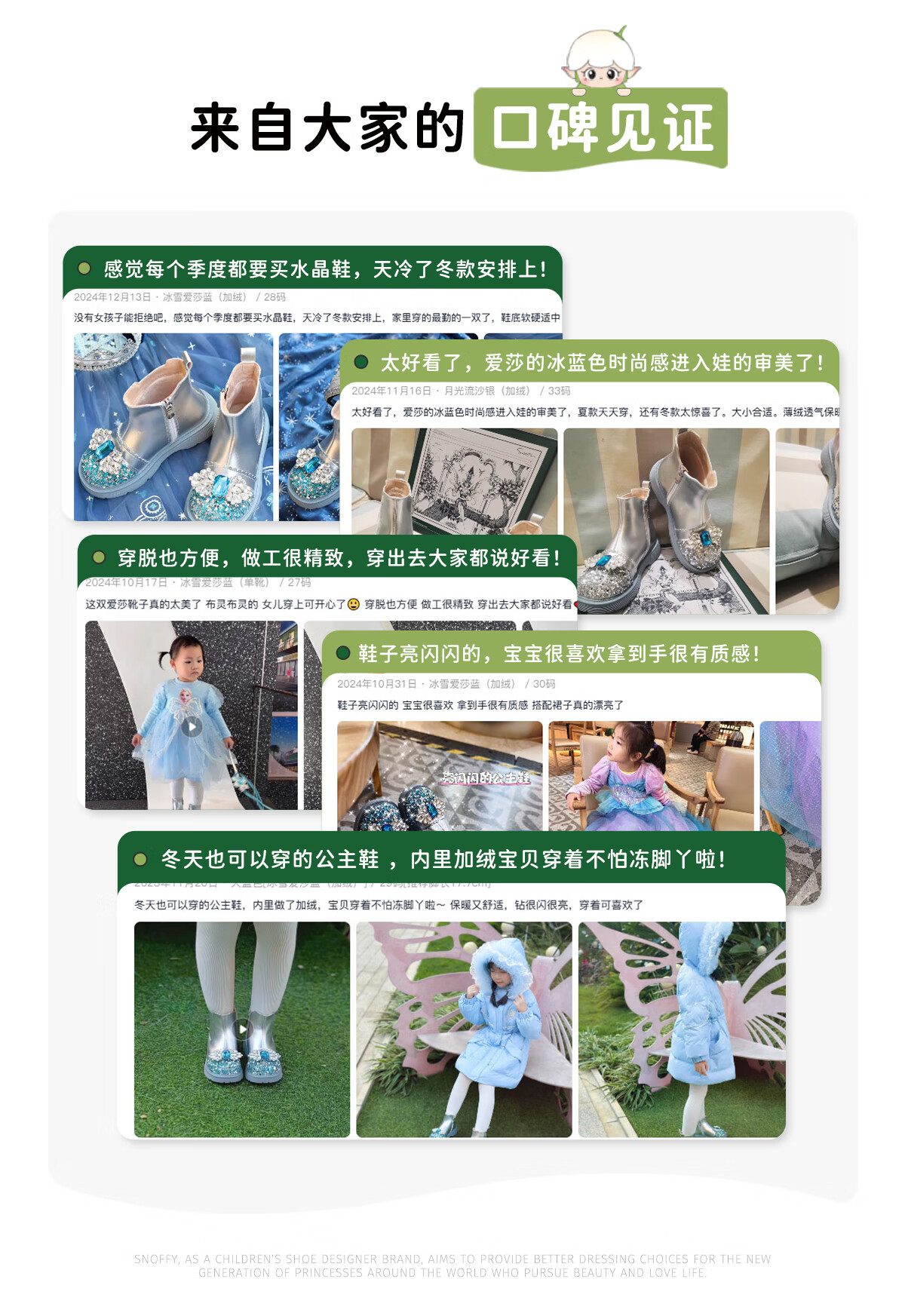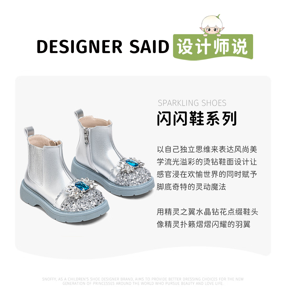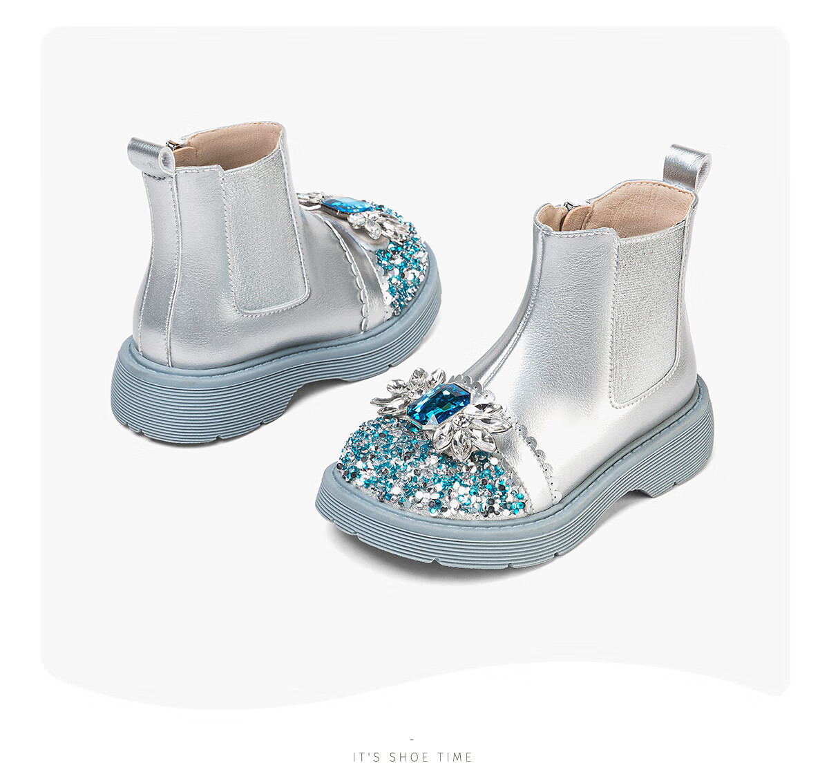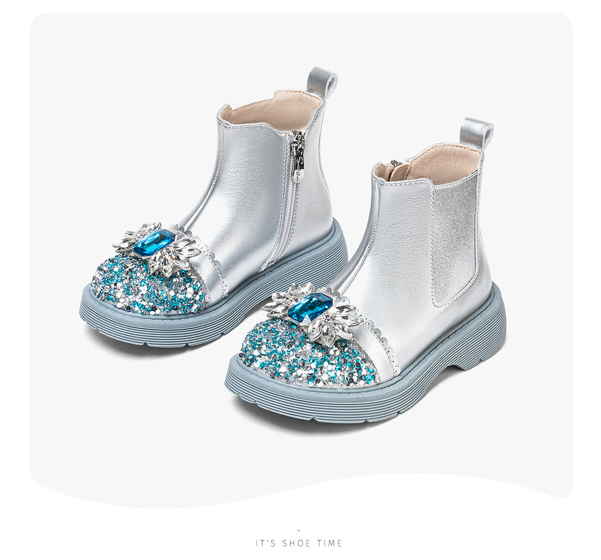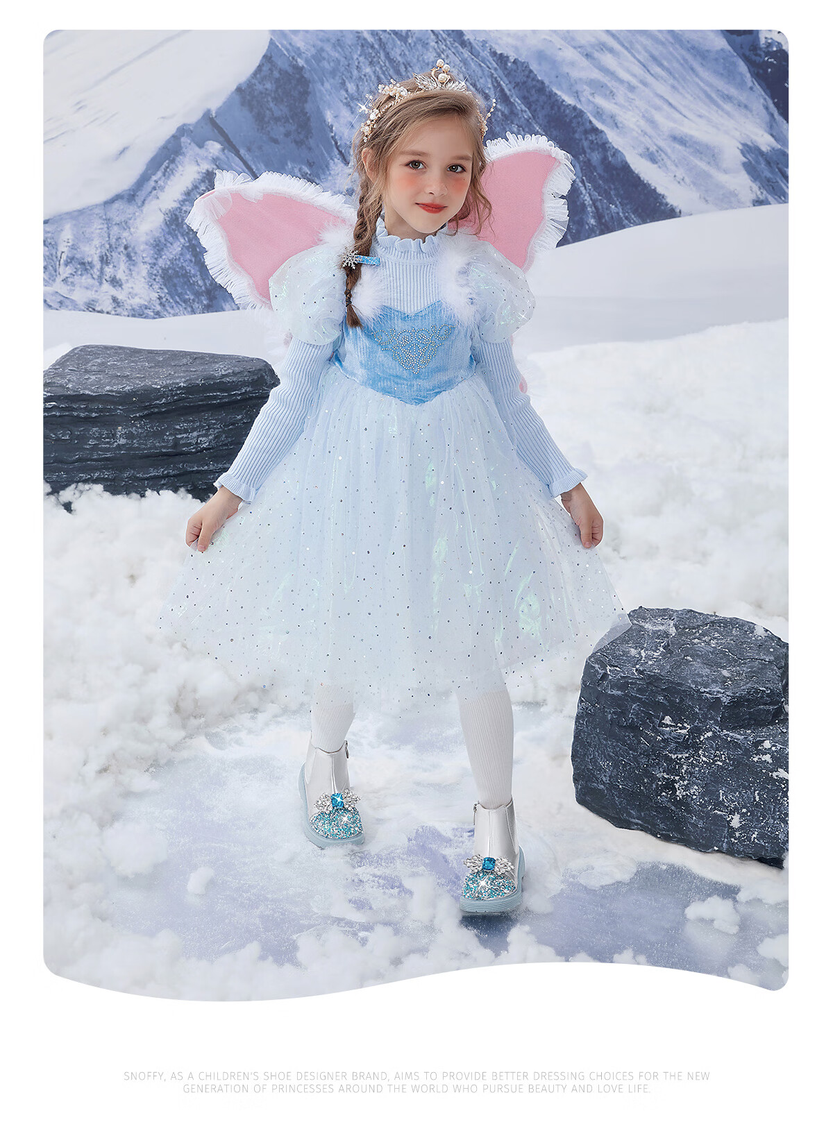 Snuffy Girls' Boots Autumn and Winter Children's Plush Leather Boots Princess Elsa Warm Short Leather Boots Ice Blue 29
