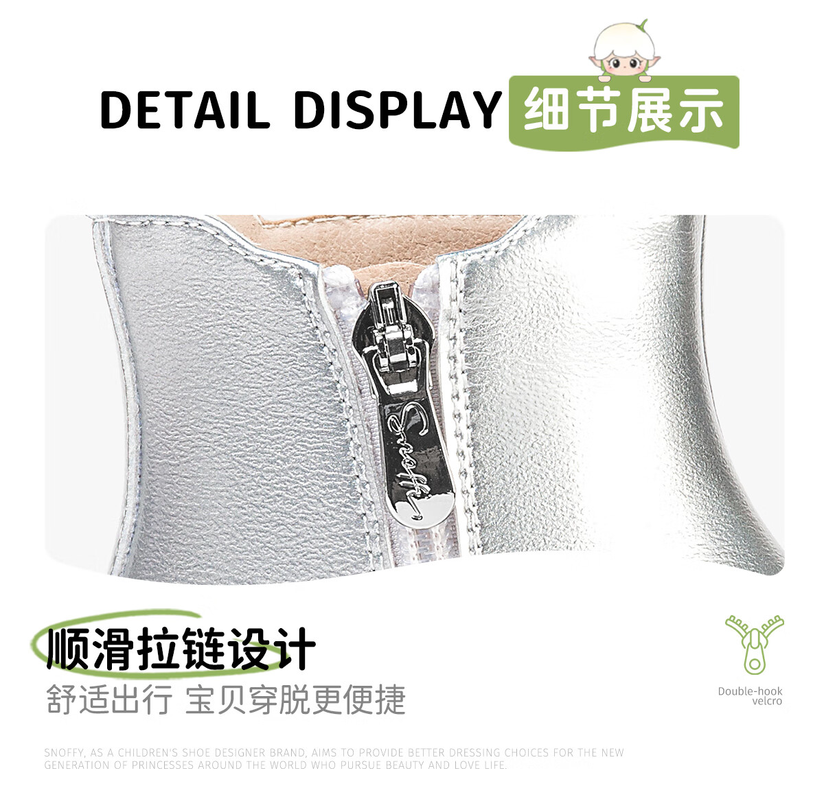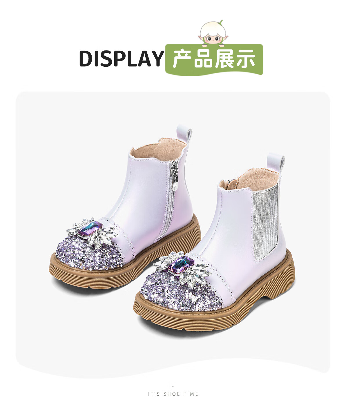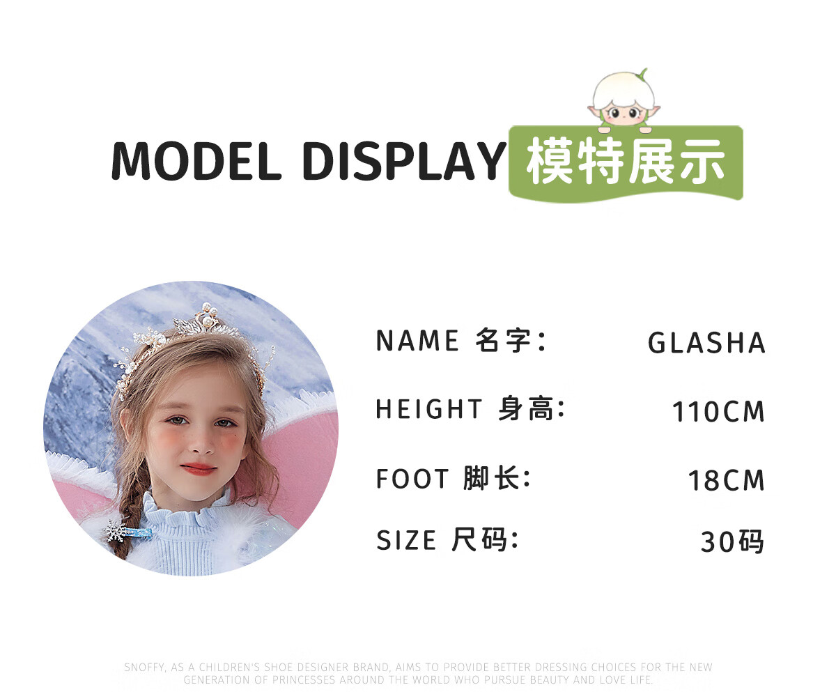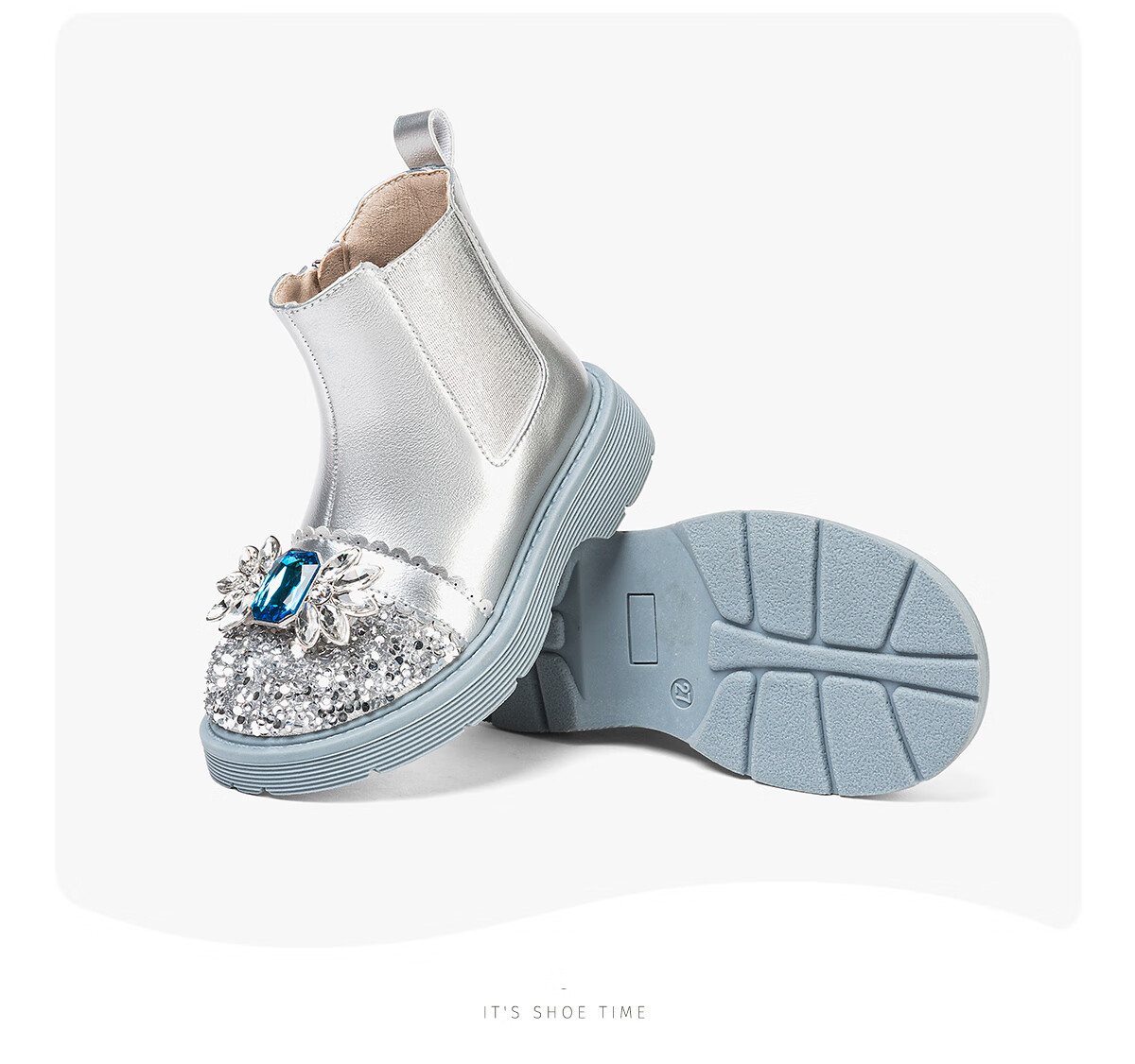 Snuffy Girls' Boots Autumn and Winter Children's Plush Leather Boots Princess Elsa Warm Short Leather Boots Ice Blue 29