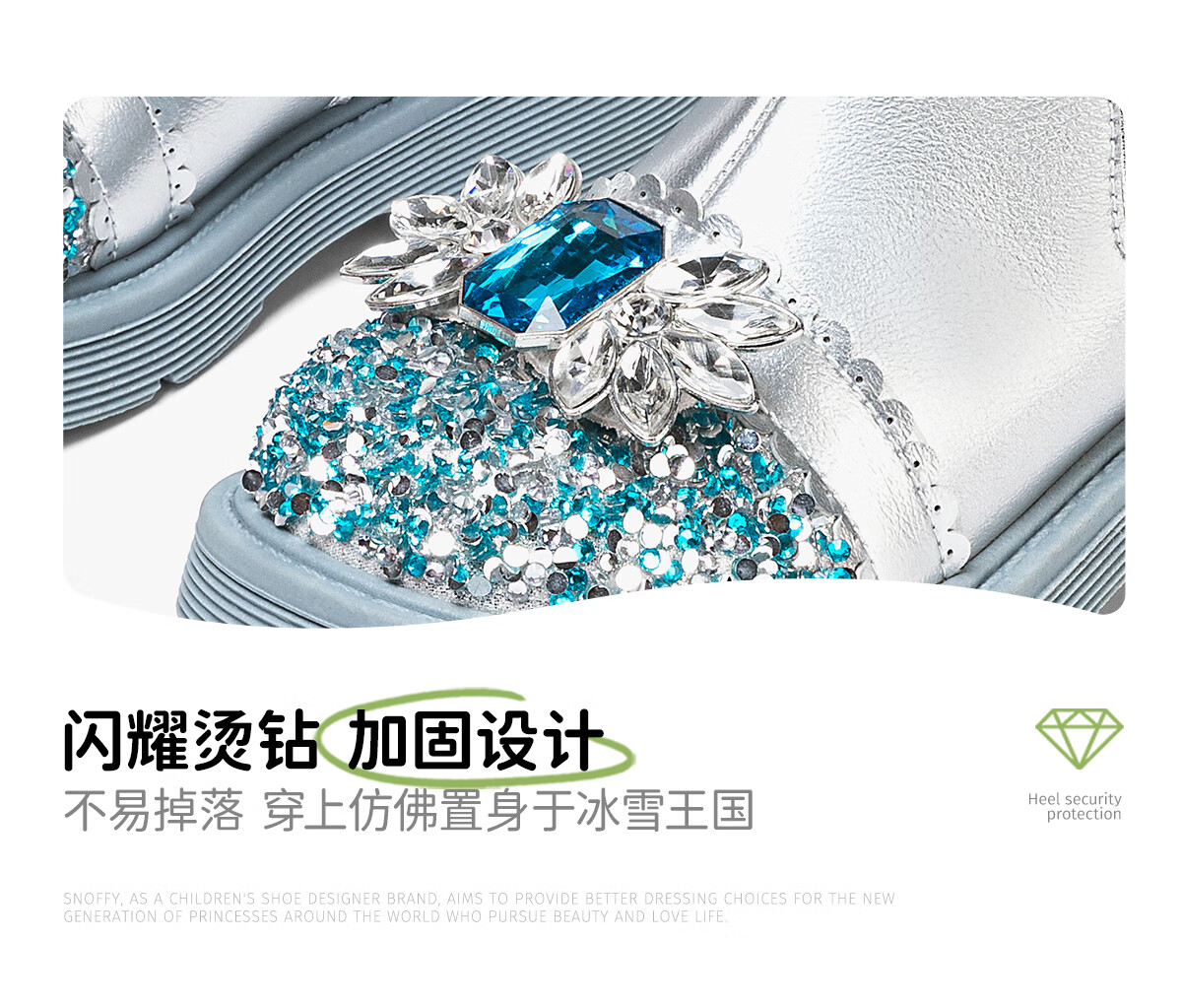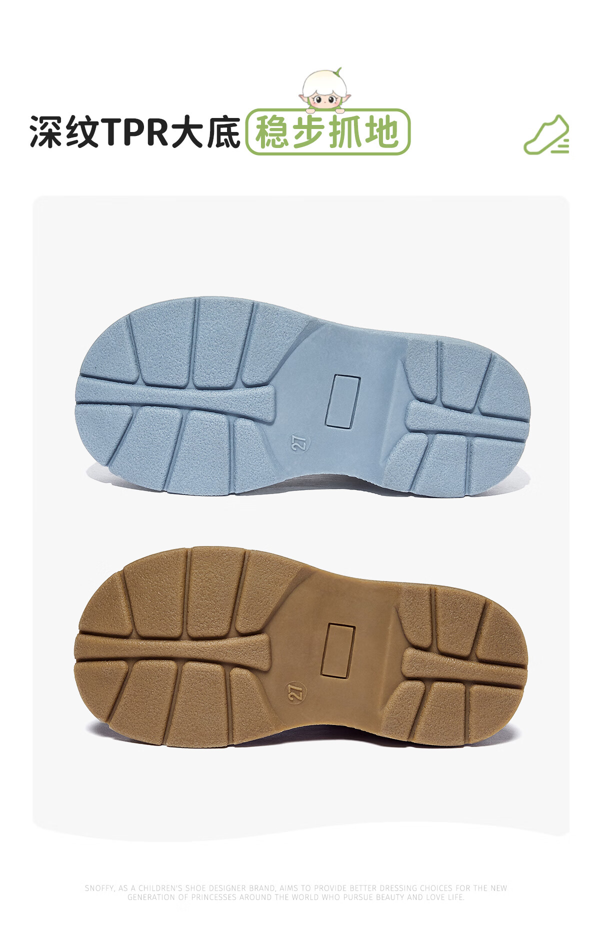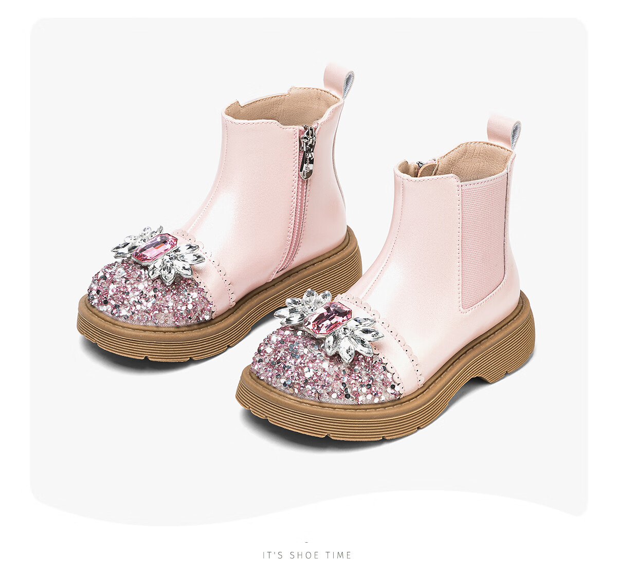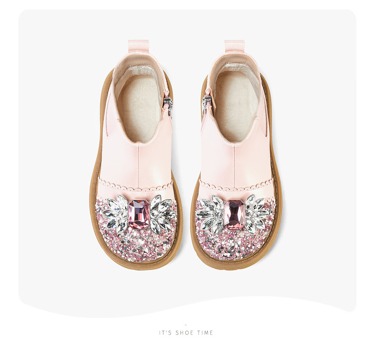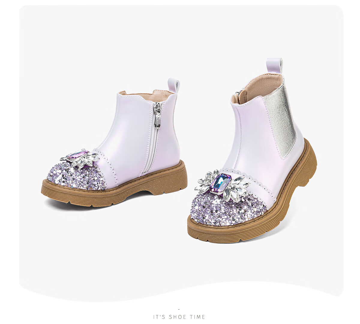 Snuffy Girls' Boots Autumn and Winter Children's Plush Leather Boots Princess Elsa Warm Short Leather Boots Ice Blue 29