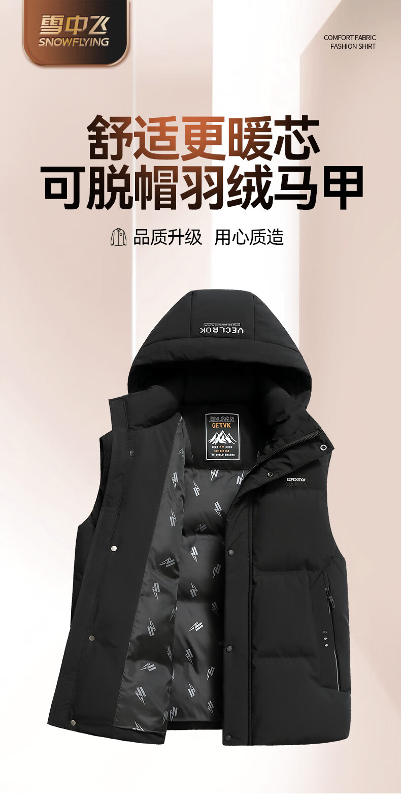 Flying in the snow down jacket men's vest duck down cold-proof autumn and winter warm fashion removable hood short casual vest 175