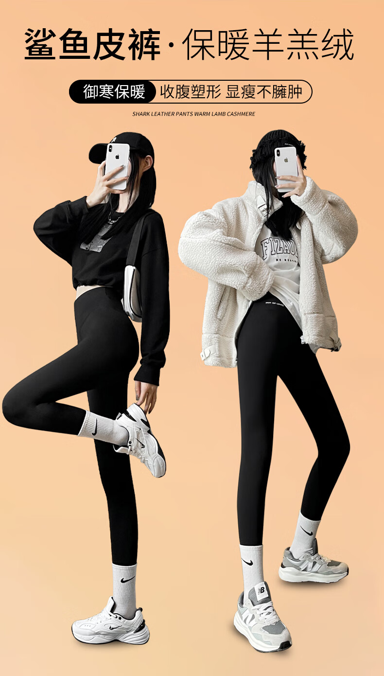 Langsha 400g thickened shark pants women's leggings autumn and winter high-waisted belly-lifting magic plus velvet outer tights