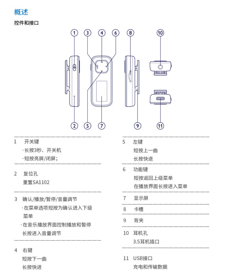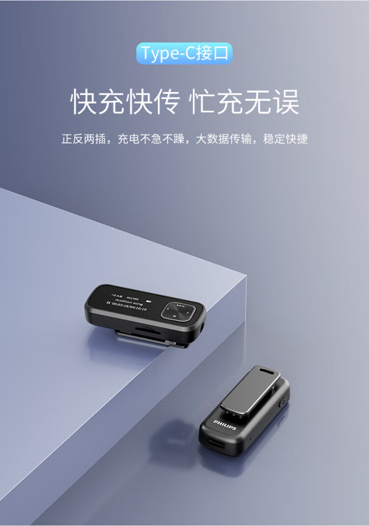 Philips SA1102 sports and running MP3 player supports card FM radio recording black with 64G memory card