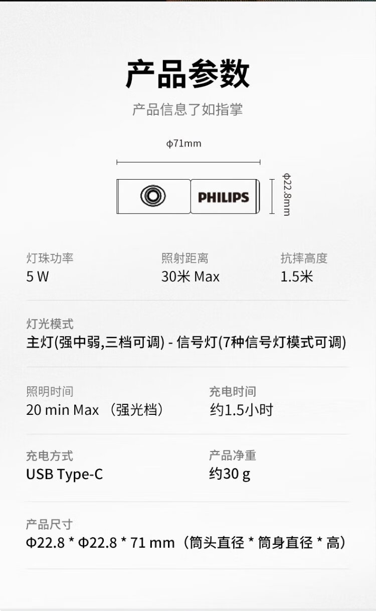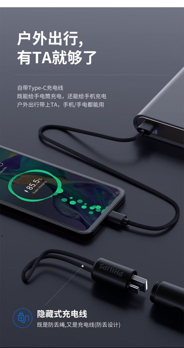 Philips (PHILIPS) flashlight strong light household mini small portable riding warning outdoor lighting emergency light SFL1126