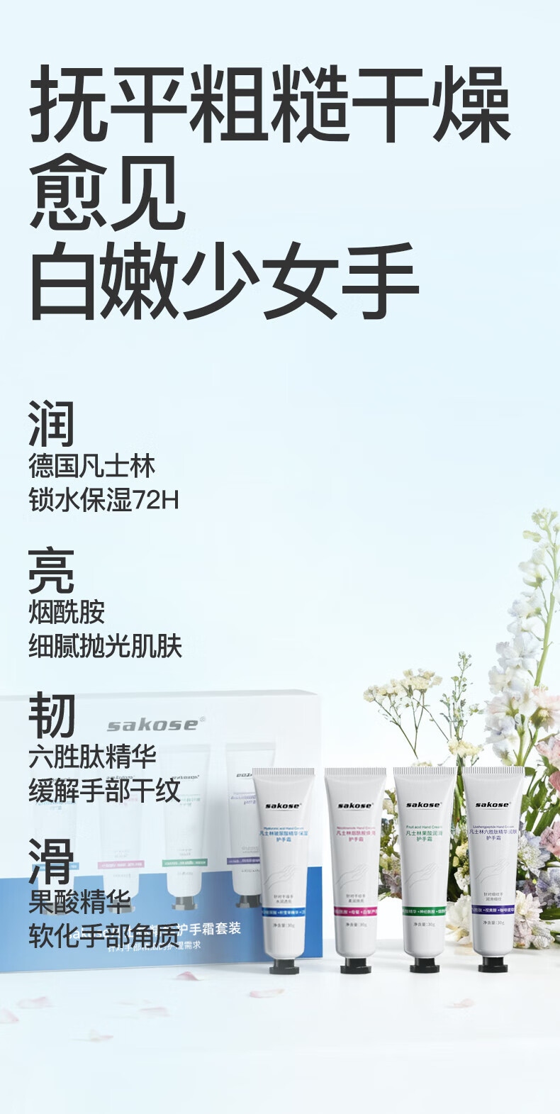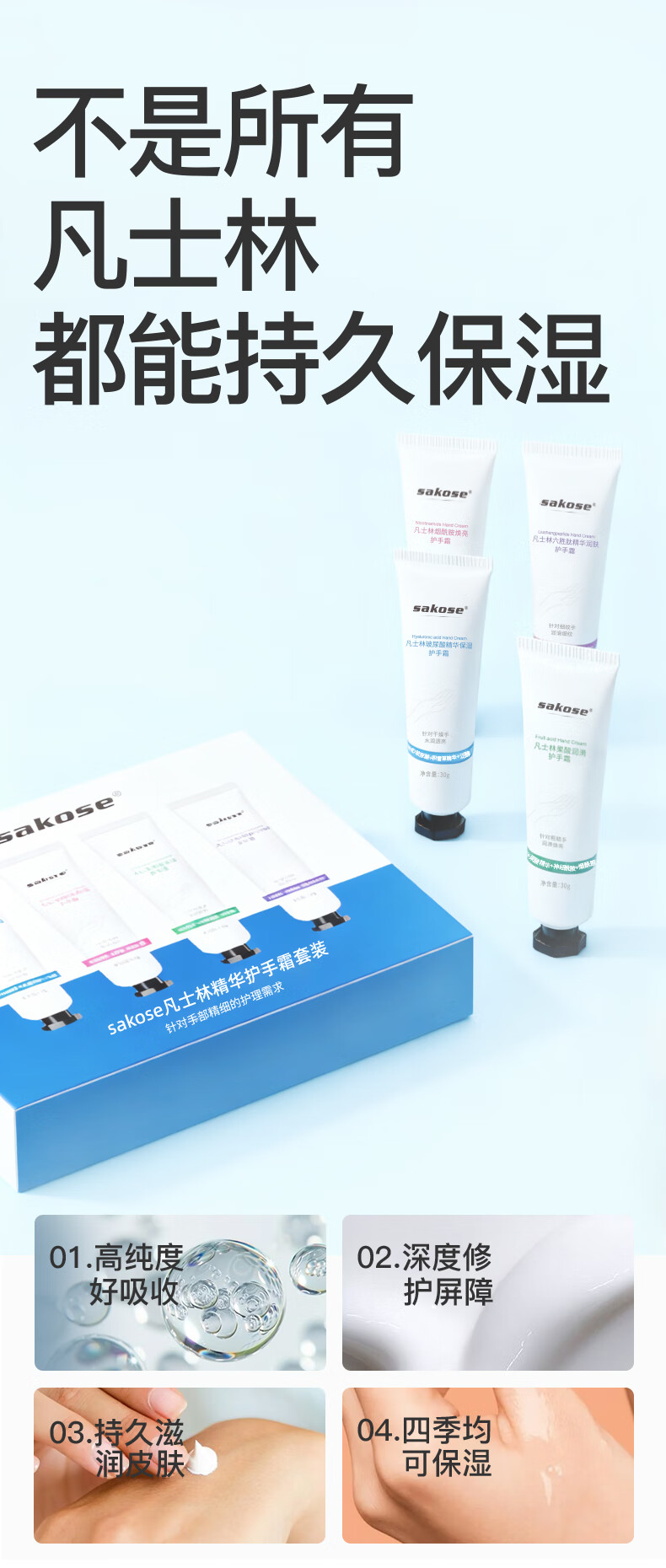 Sakose Vaseline Essence Hand Cream Gift Box 4 Pack Autumn and Winter Special Moisturizing and Anti-Drying Birthday Gift for Men and Women