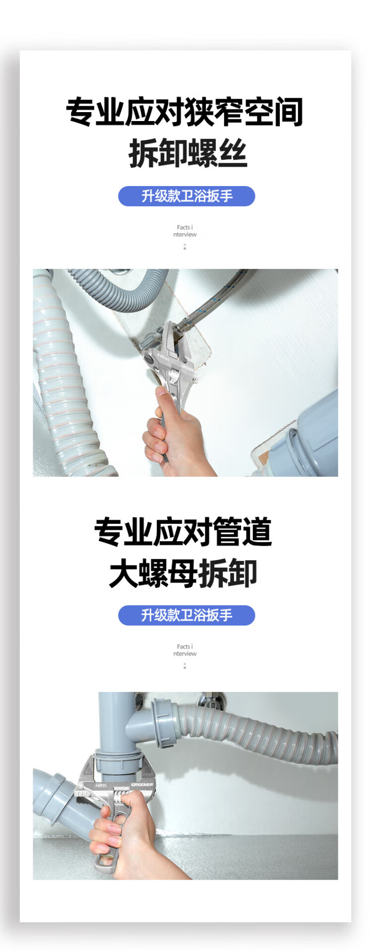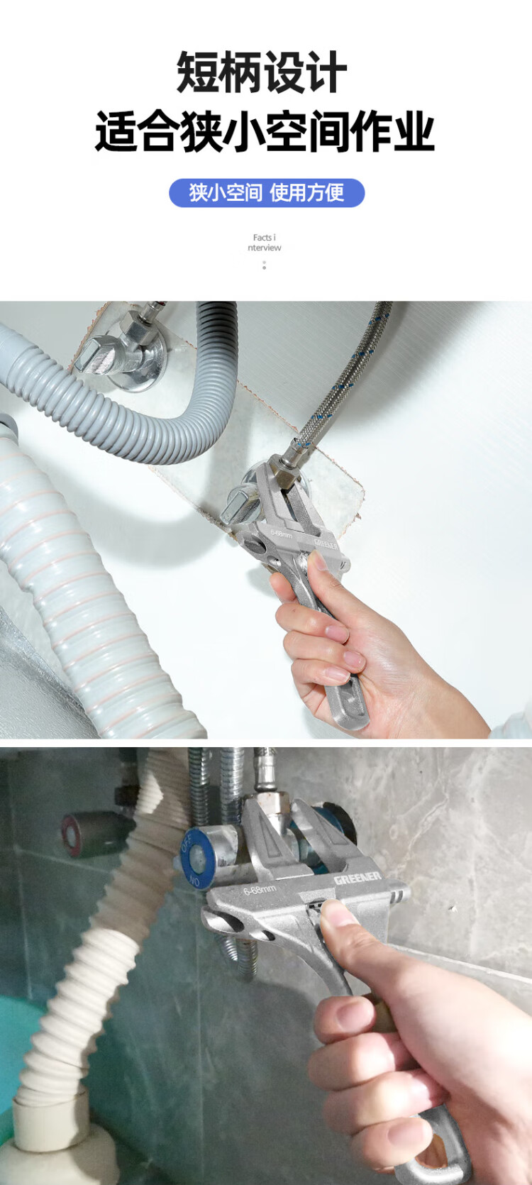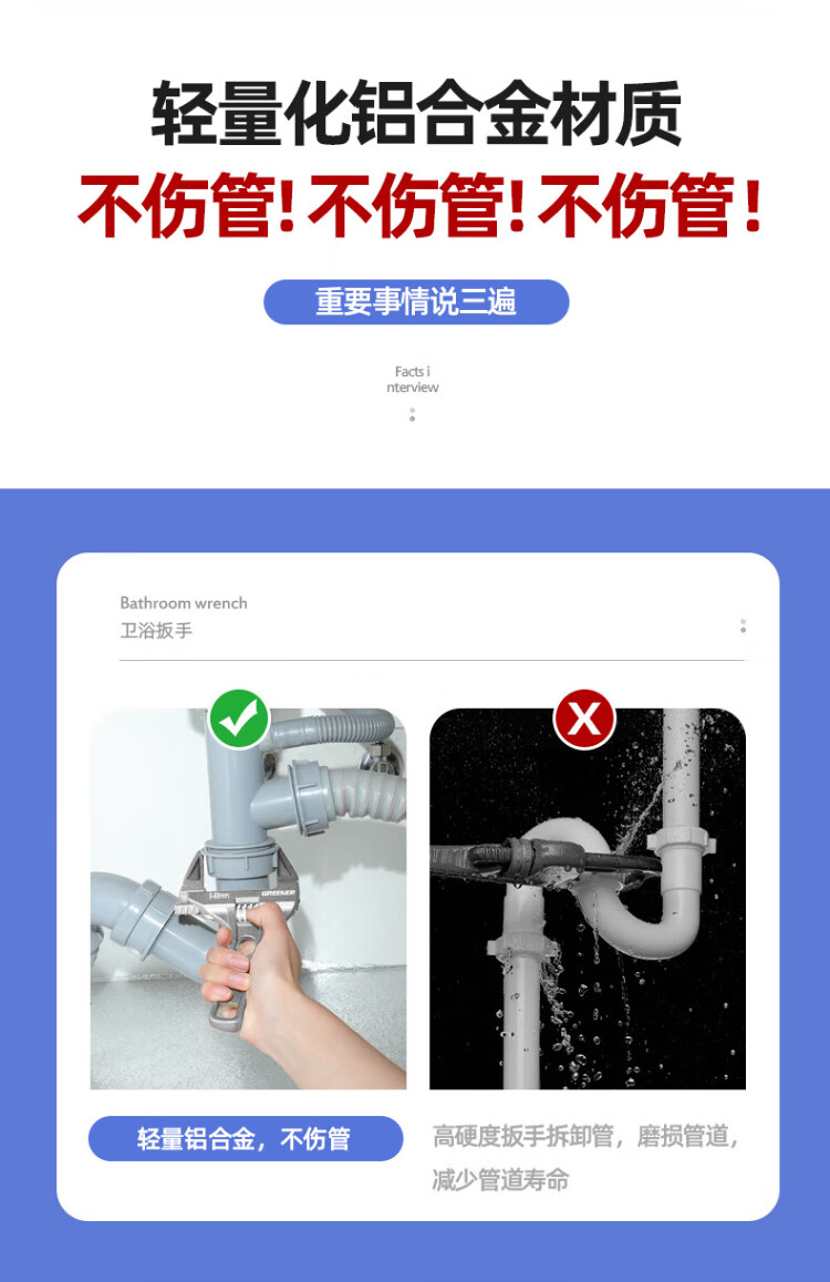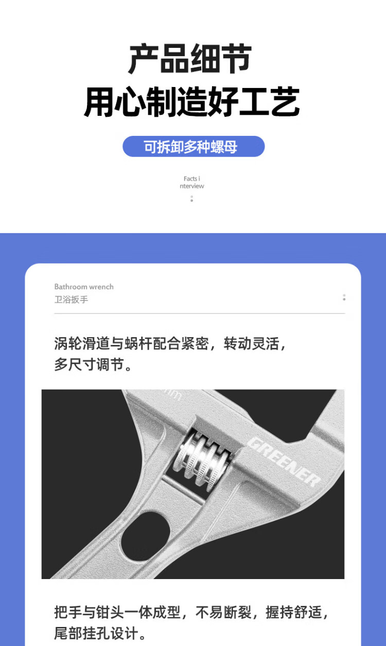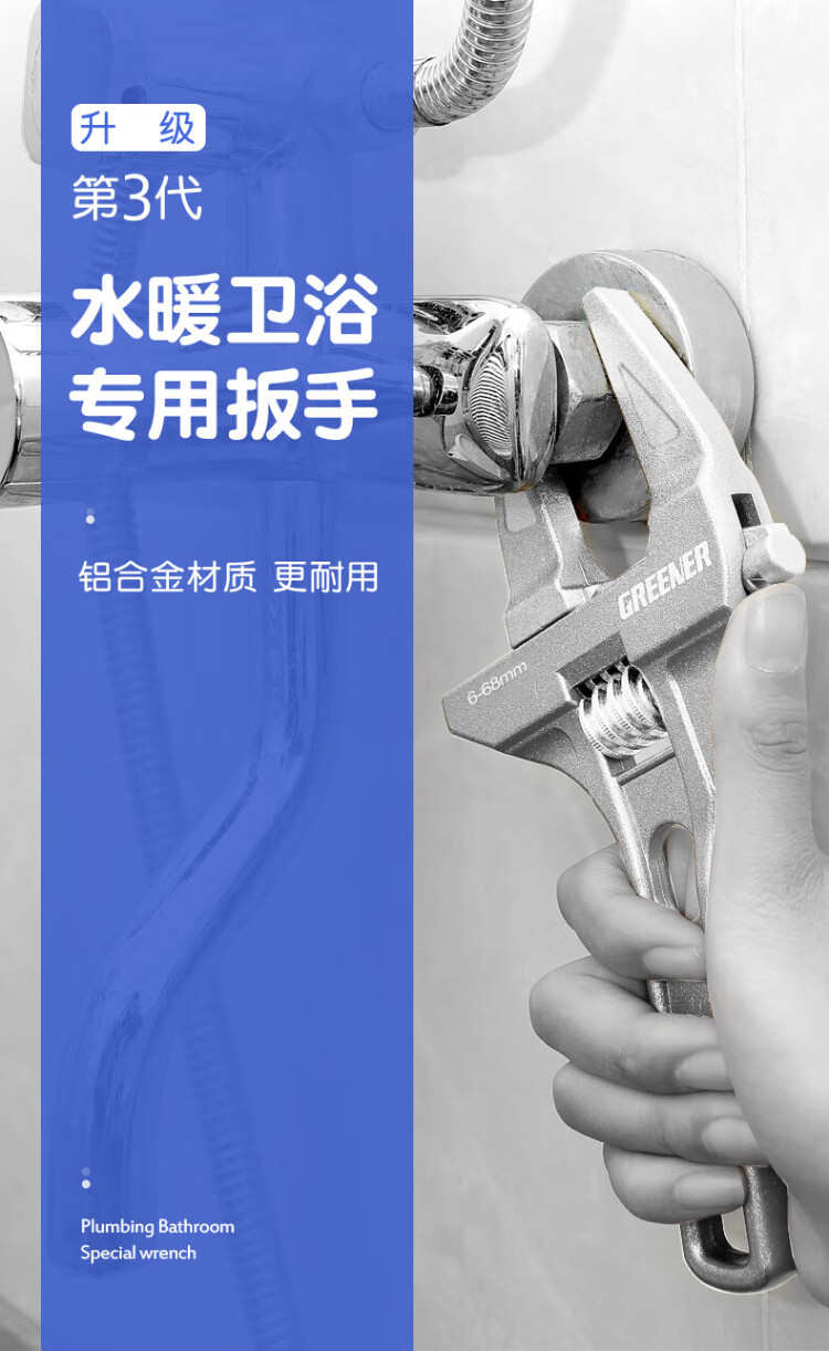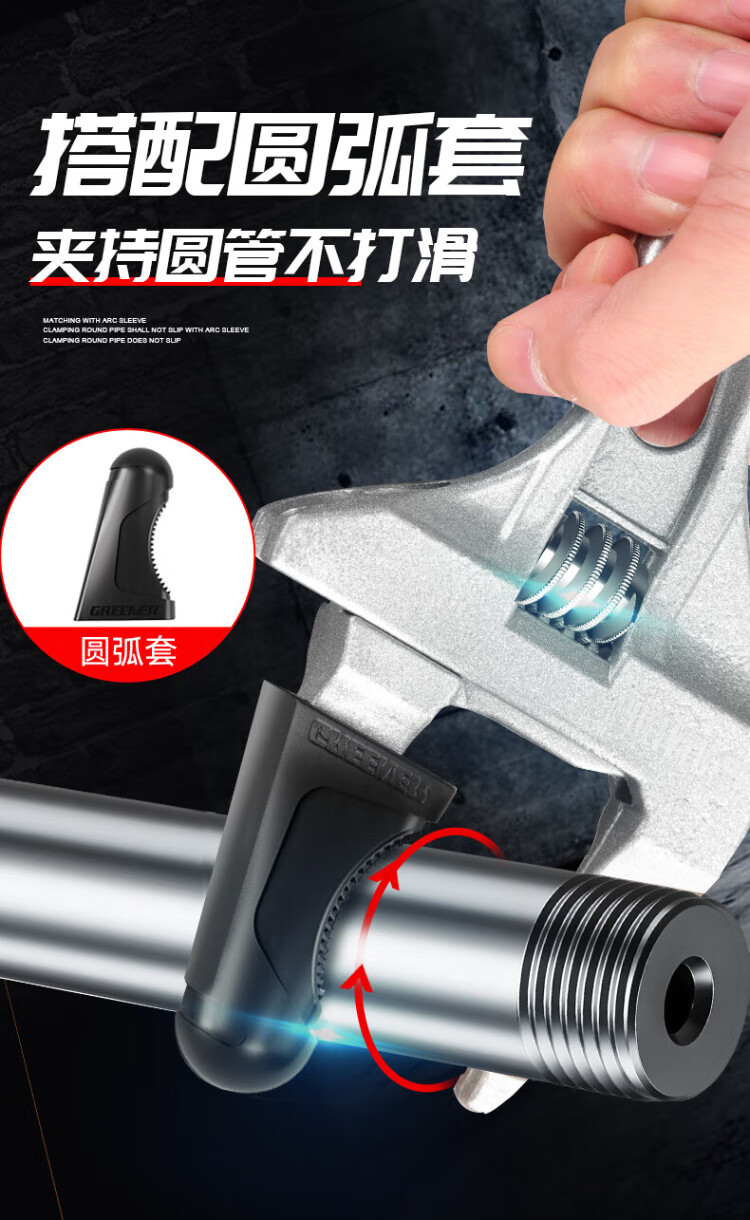 GREENER adjustable wrench bathroom wrench household universal live mouth large open wrench short handle water pipe wrench multi-function wrench
