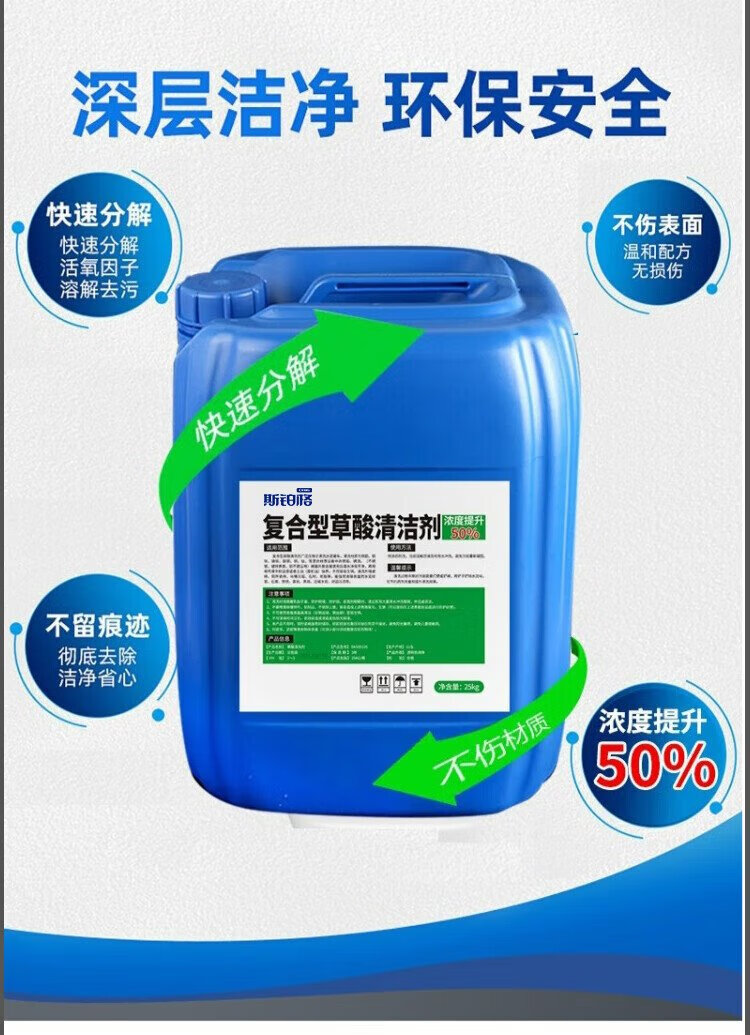 Spurge solución de limpieza con ácido oxálico BGS-223 agente desincrustante para eliminar el aceite y limpiar los azulejos de la pared exterior del inodoro para eliminar la suciedad del camión cisterna de mortero de cemento agente de limpieza 25 KG
