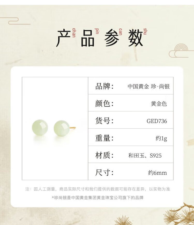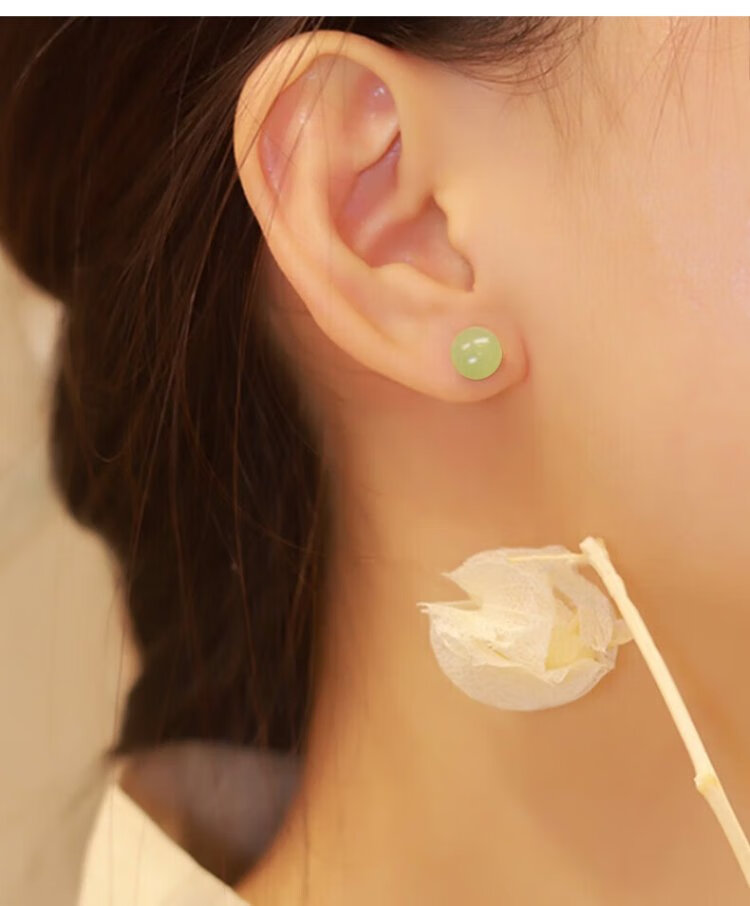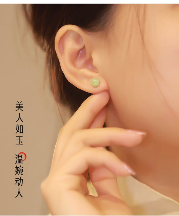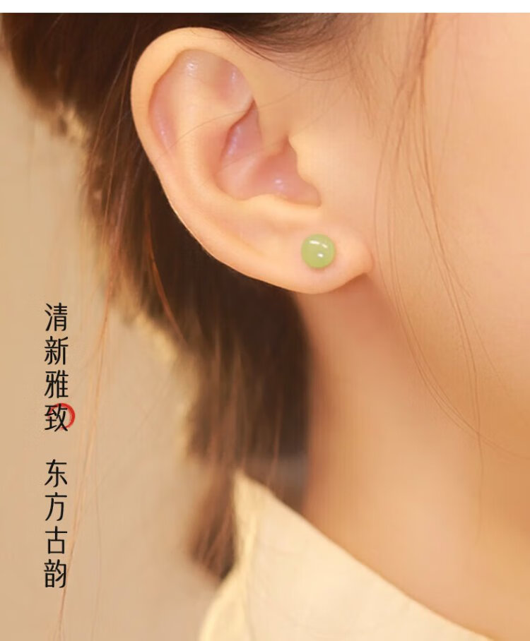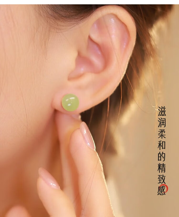 Zhen Shang Silver Chinese Gold Hetian Jade S925 Silver Earrings Girls Earrings Birthday Gifts for Girlfriends Wife Mom