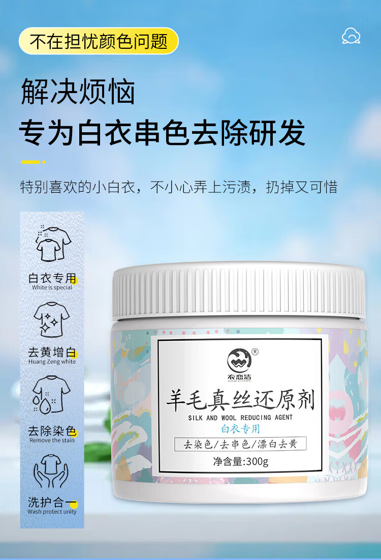 Yilian White Clothes Reducing Agent 300g Silk Wool Special Cross Color Dyeing Remover White Clothes Repair Bleach Powder