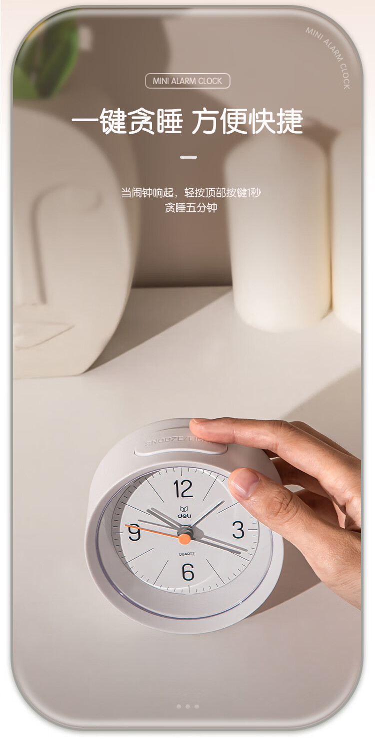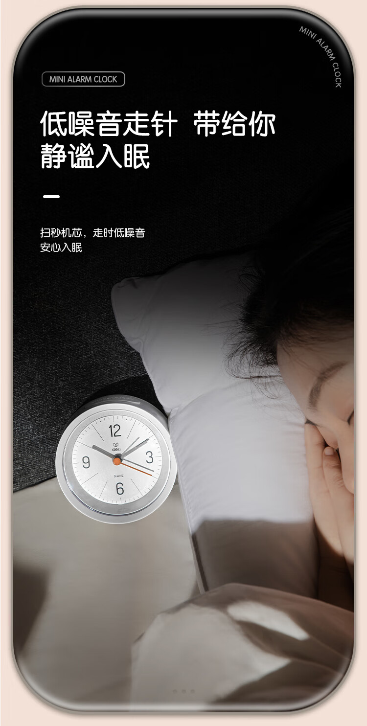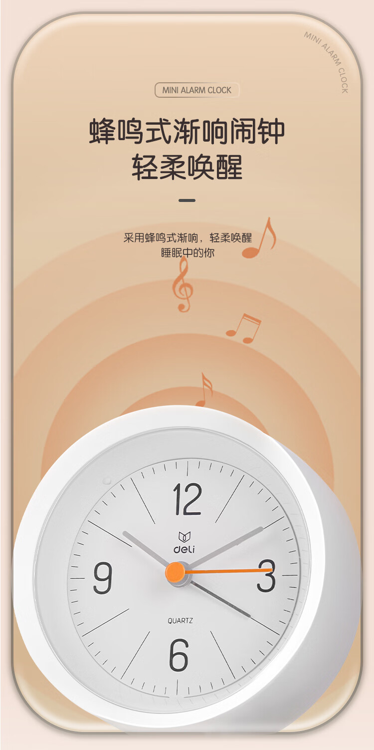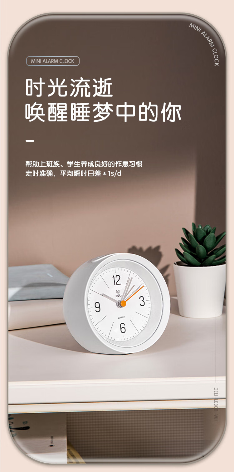 Deli Simple Buzzer Alarm Clock Low Noise Student Alarm Clock Soft Light Home Office Alarm Clock White LE300-WH Must-have New Year Gift