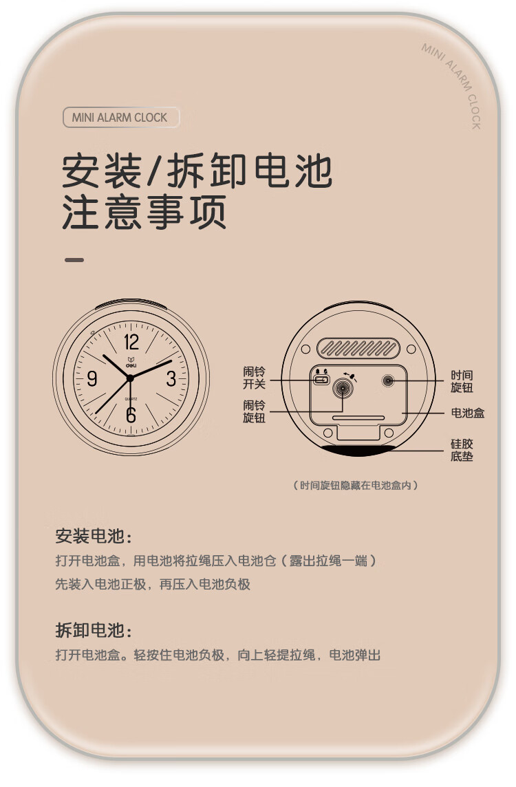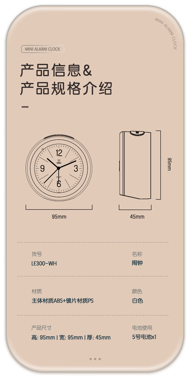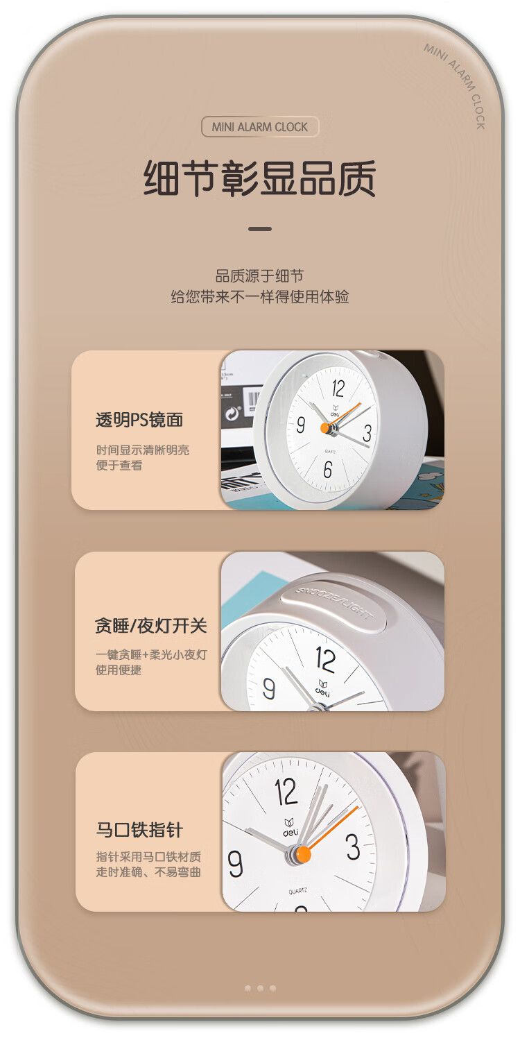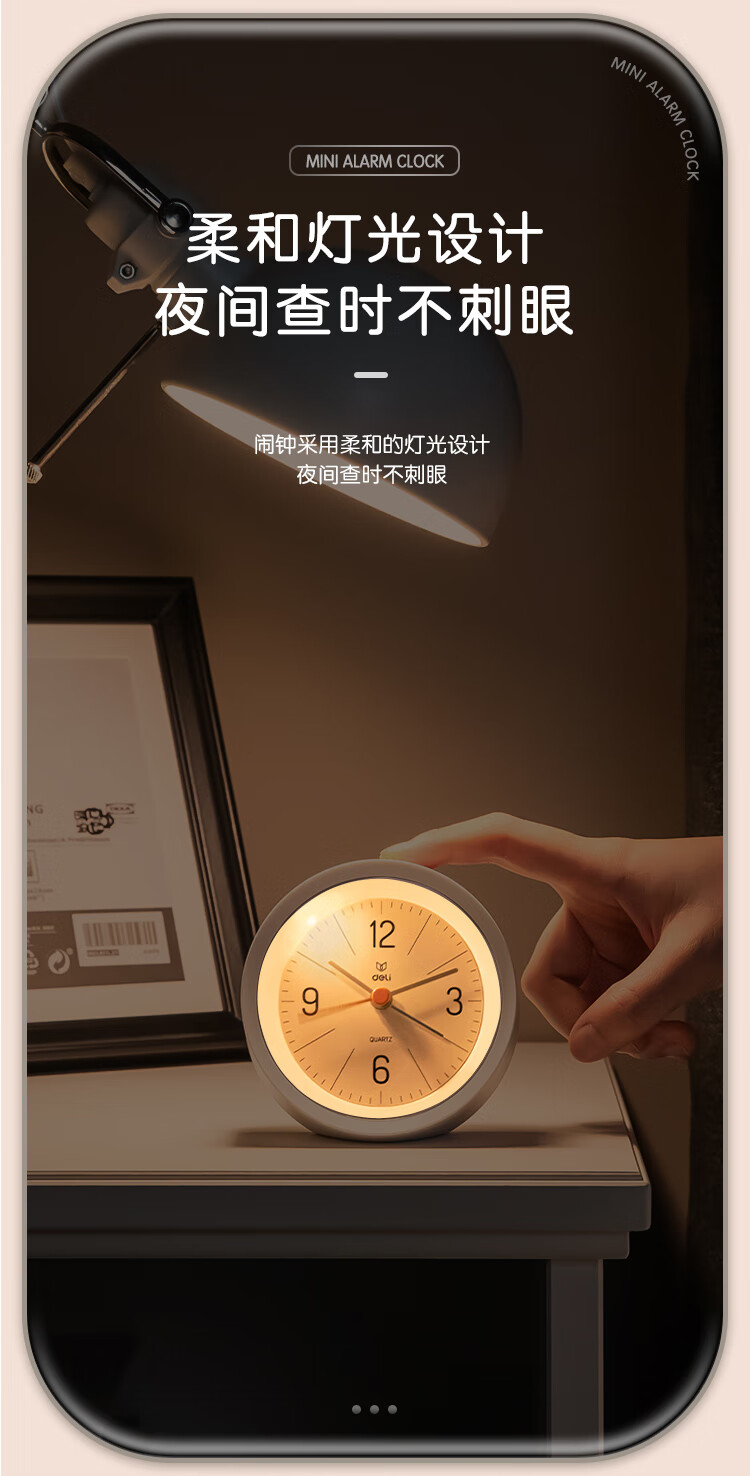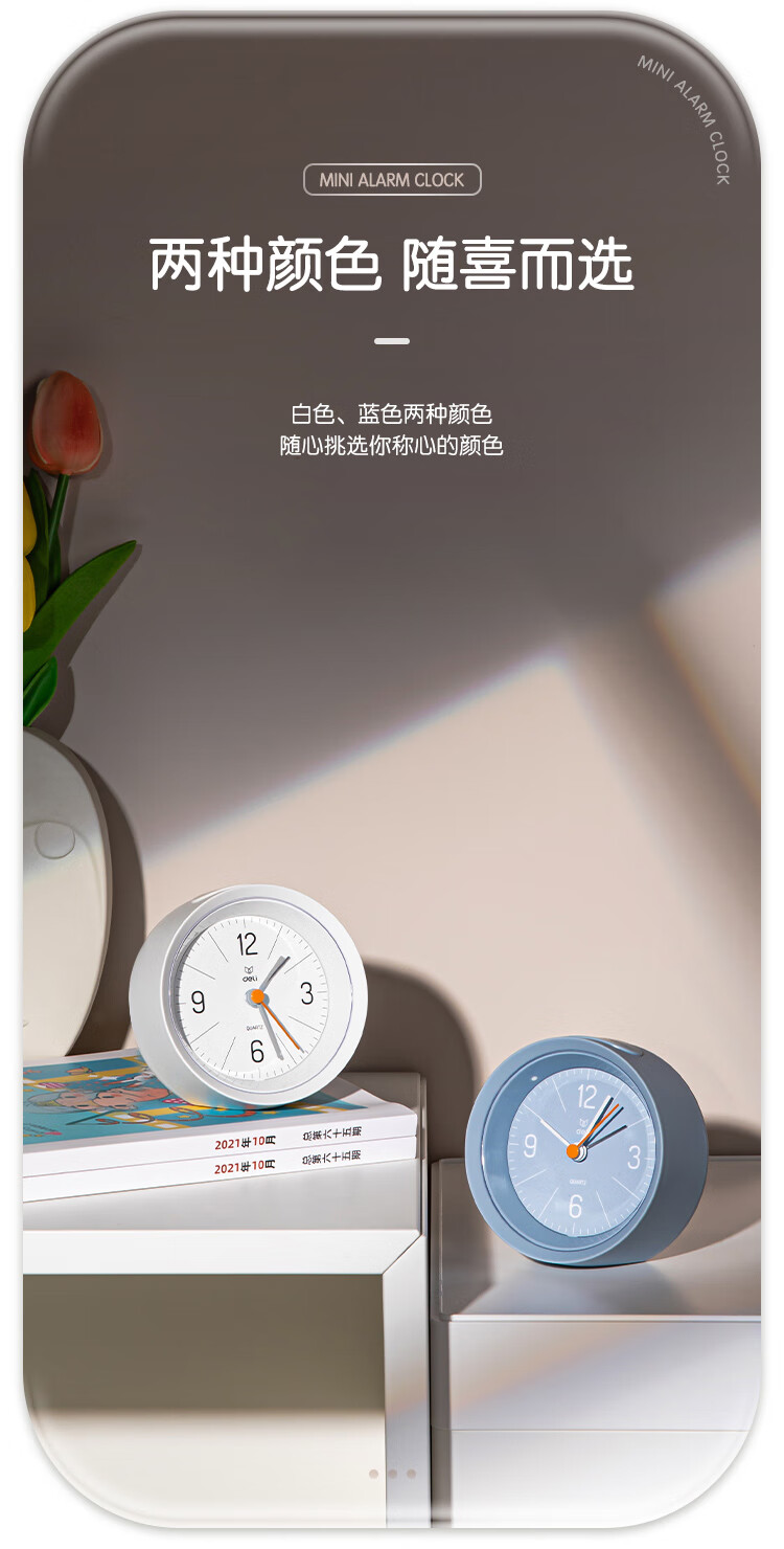 Deli Simple Buzzer Alarm Clock Low Noise Student Alarm Clock Soft Light Home Office Alarm Clock White LE300-WH Must-have New Year Gift