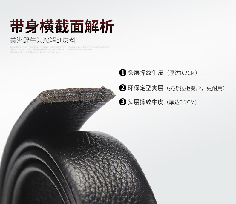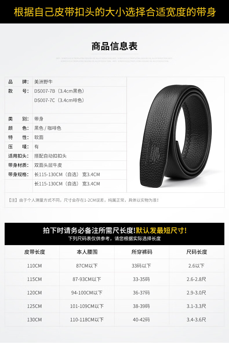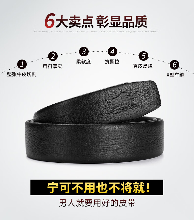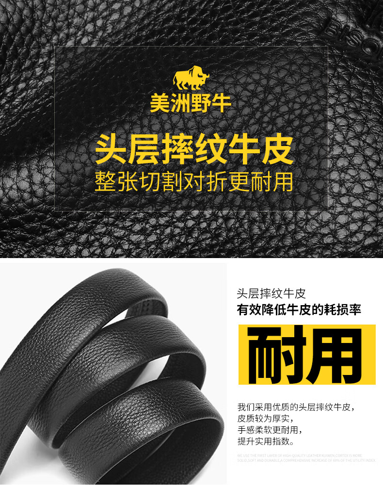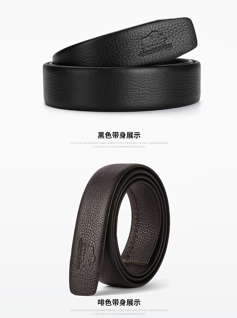 American bison leather belt for men, first-layer cowhide, textured belt, buckle-free headband, automatic buckle belt, birthday gift