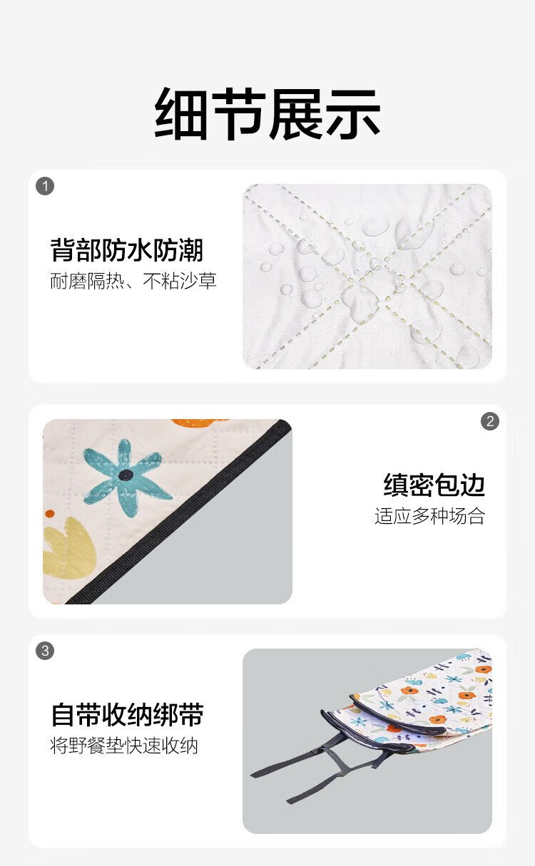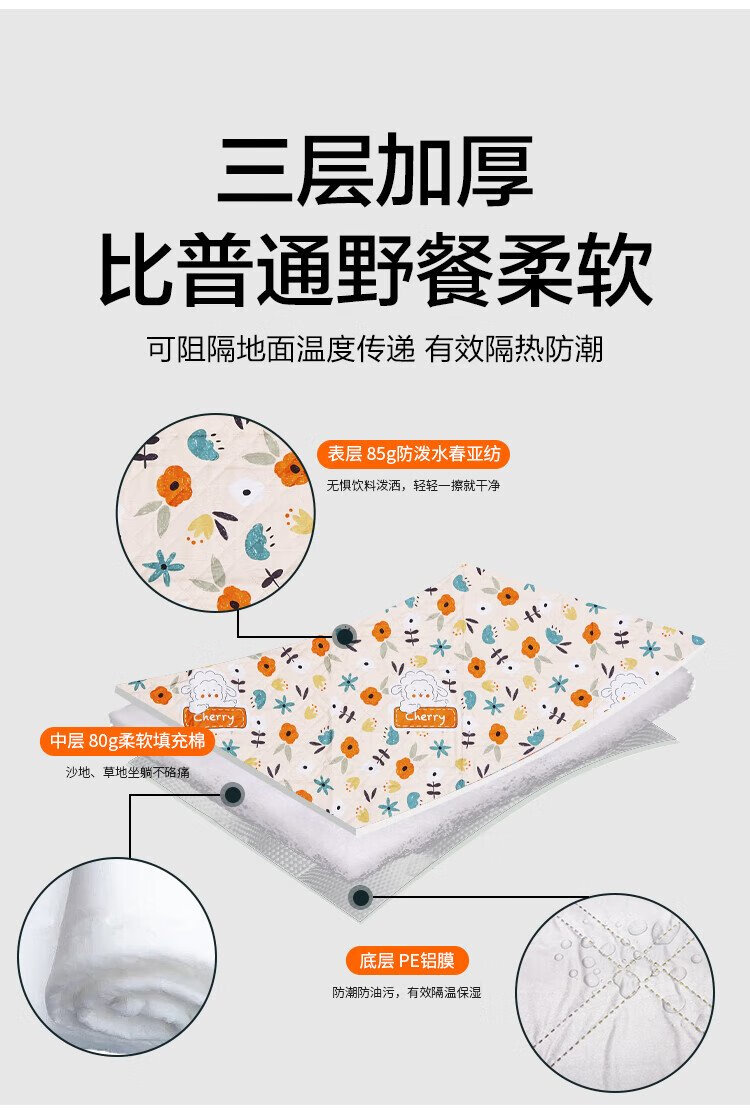 Made in Tokyo, outdoor picnic mat, park tent, moisture-proof mat, camping mat, ultrasonic machine washable floor mat, flowery 200*200cm