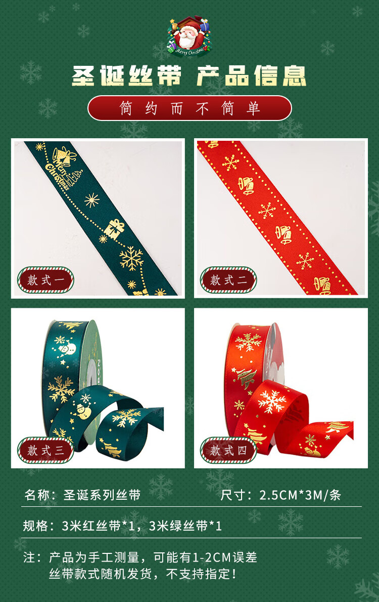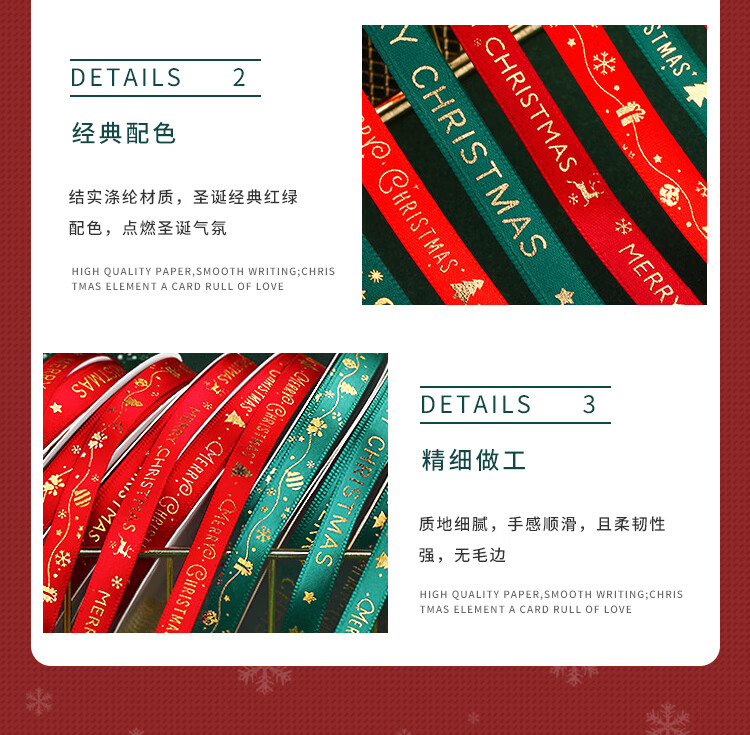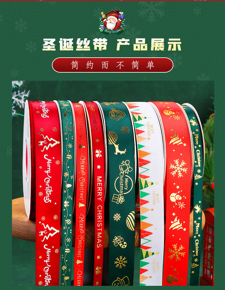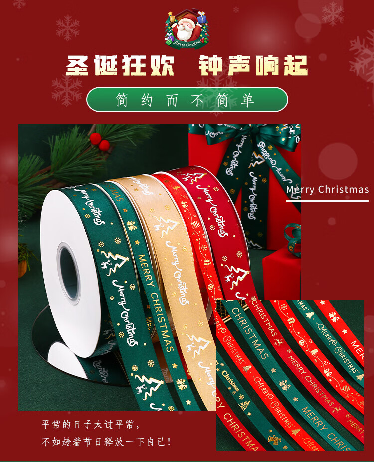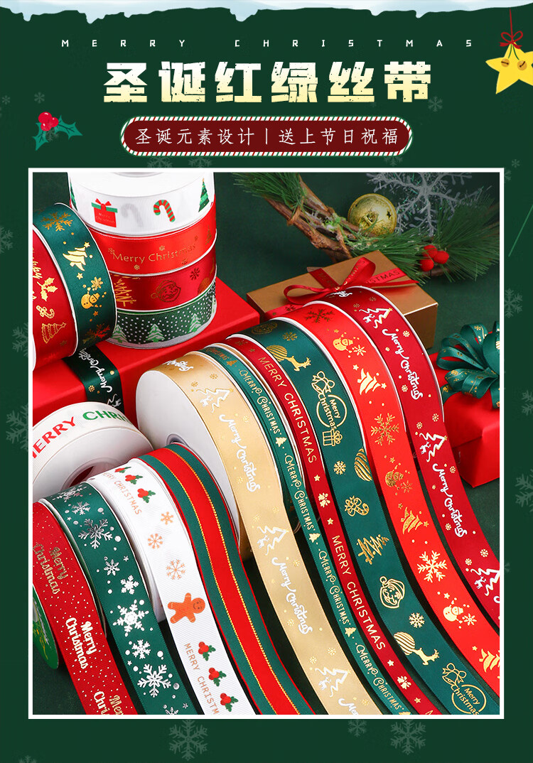 DOROCH Christmas ribbon 6 meters ribbon decoration ribbon gift packaging ribbon party decoration ribbon 2.5cm