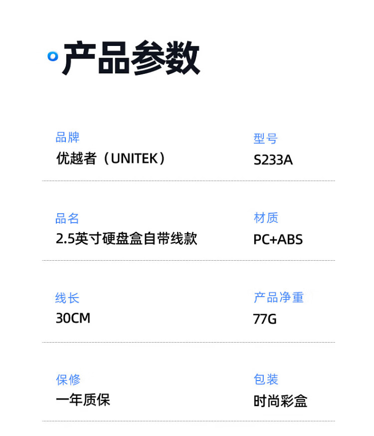优越者(UNITEK)USB3.0移动硬盘盒2.5英寸外置壳适用SATA串口笔记本电脑固态机械ssd硬盘盒子S233A