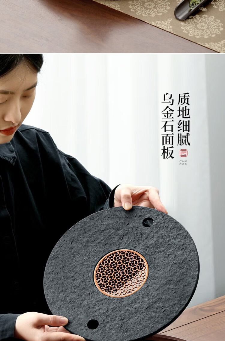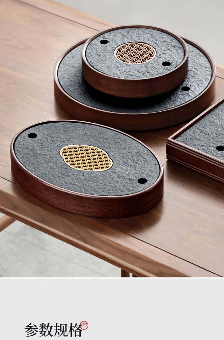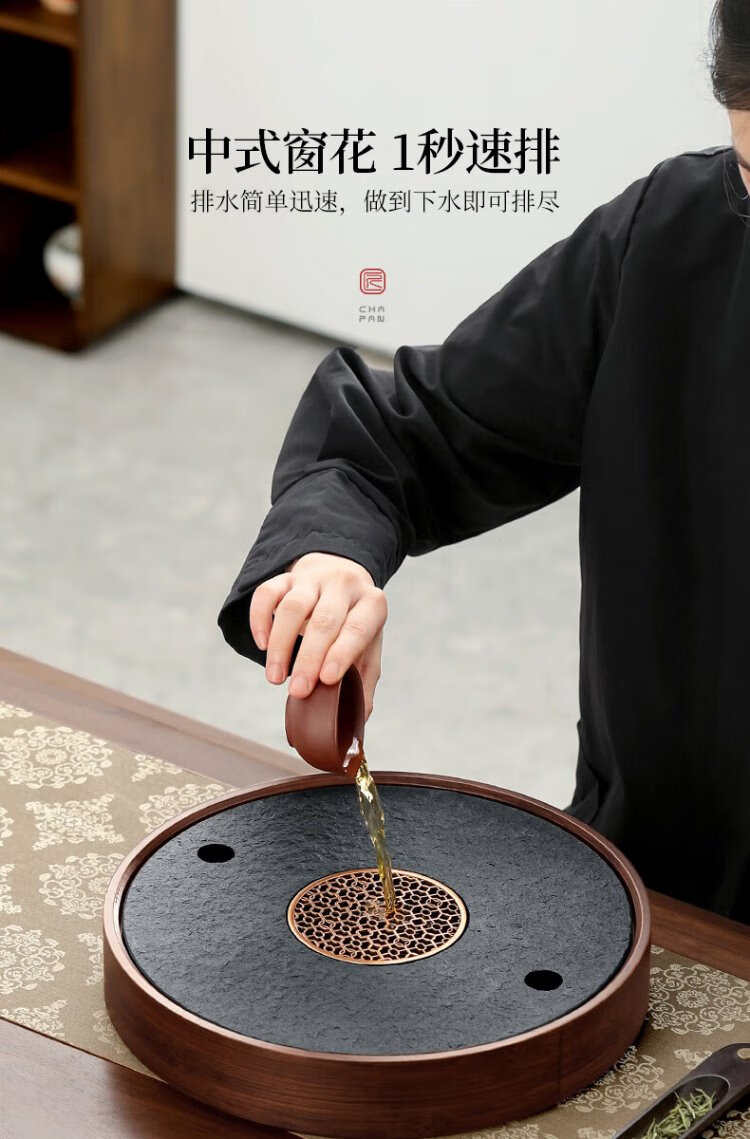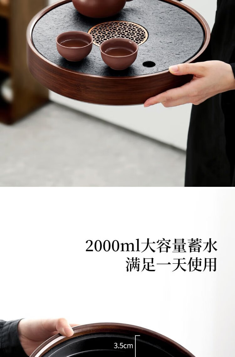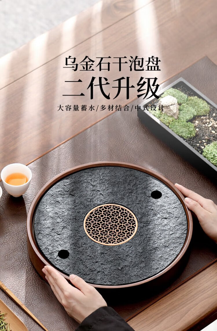 Shangyanfang natural black gold stone tea tray household round kung fu tea set tray water storage small tea table tea sea